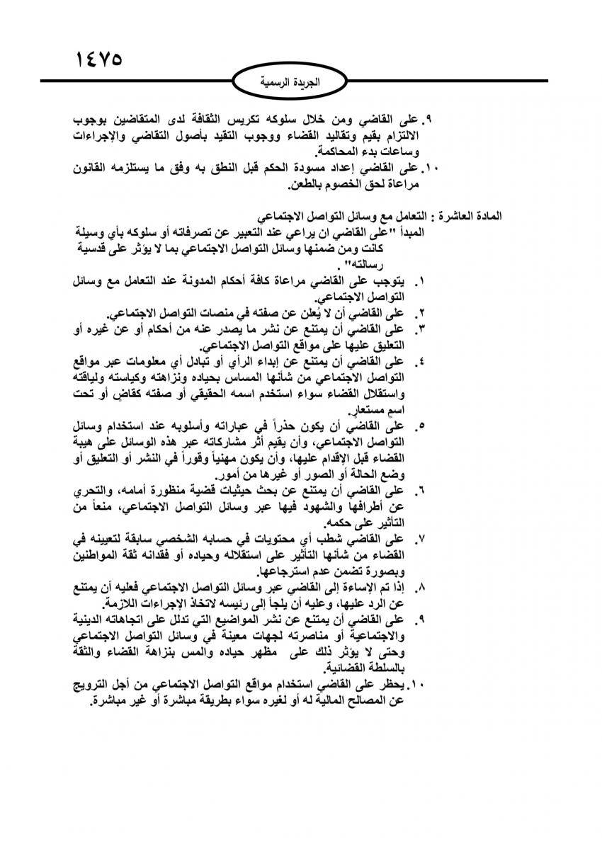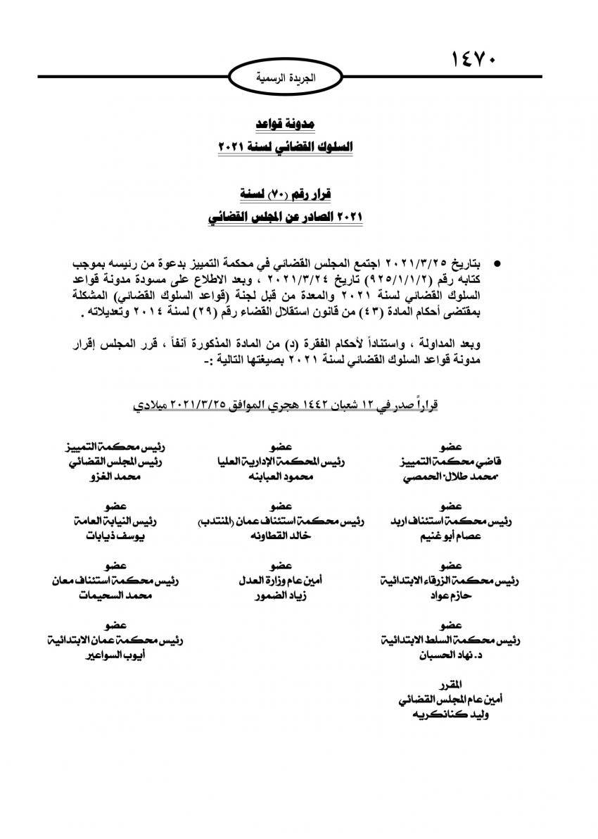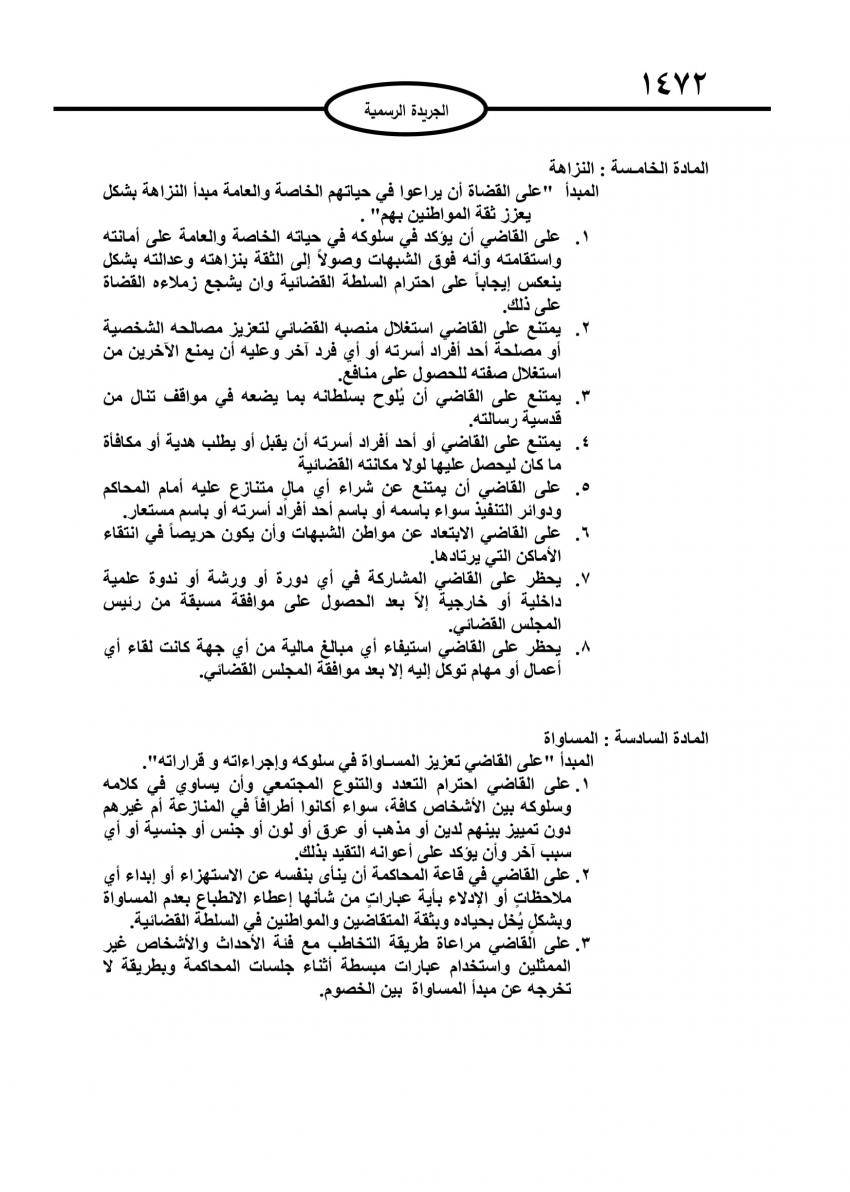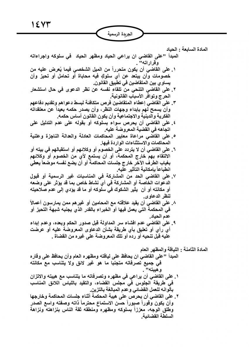 صدر في عدد الجريدة الرسمية اليوم الخميس مدونة قواعد السلوك القضائي لسنة 2021.