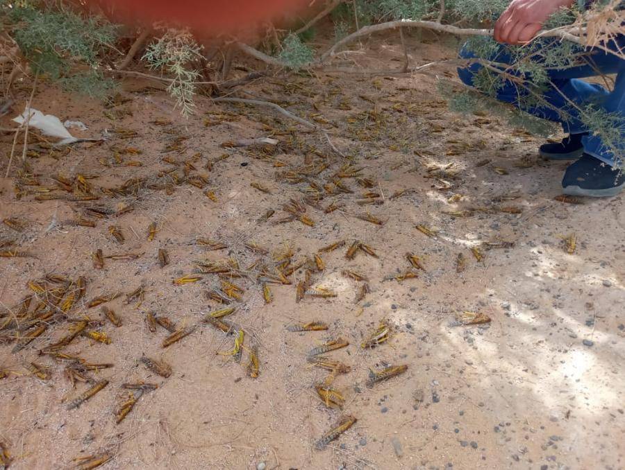 اكد وزير الزراعة المهندس خالد الحنيفات ان الجهود الكبيرة التي بذلت من قبل كوادر وزارة الزراعة خلال الايام الماضية واسناد سلاح الجو وكافة الجهات الشريكة في عدد من المواقع التي شهدت دخول للجراد الصحراوي قد ادت الى القضاء على نسبة كبيرة جدا من مجموعات الجراد الصحراوي .