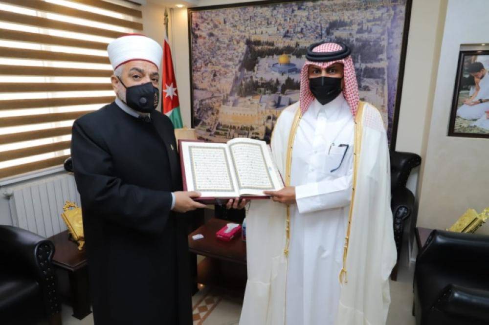 وأهدى آل ثاني 3000 مصحف من (مصحف قطر) مقدمة من وزارة الاوقاف القطرية الى نظيرتها في الأردن.