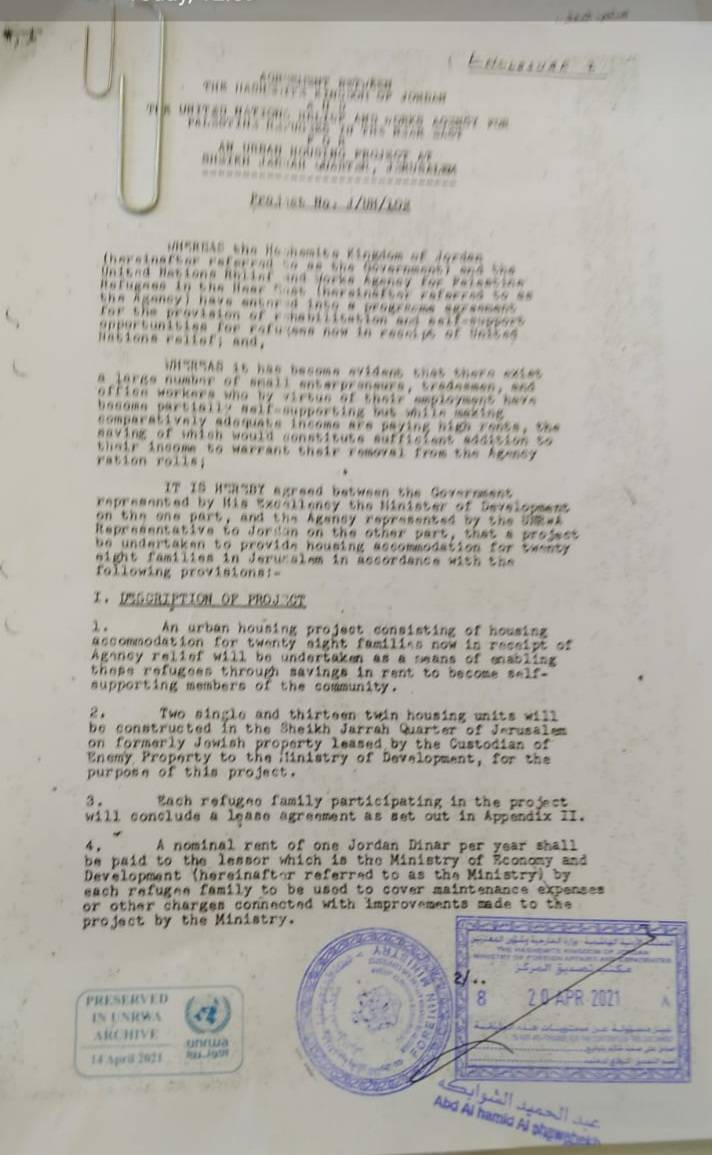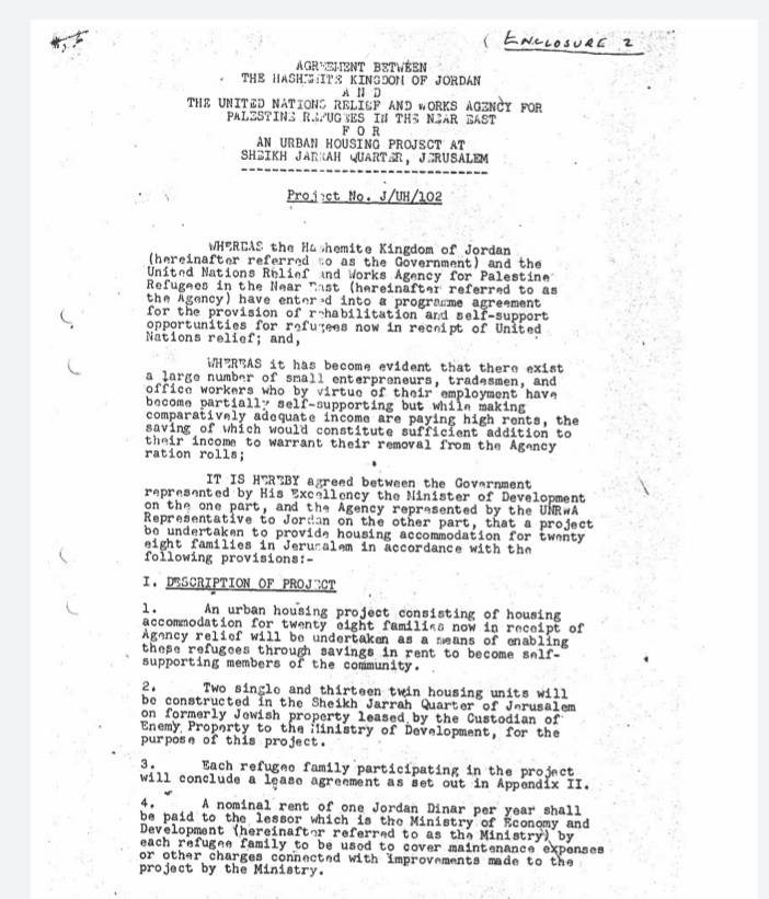 الخارجية تؤكد إبرام عقود تاجير وحدات سكنية لعدد من أهالي الشيخ الجراح عام 1956... وثيقة