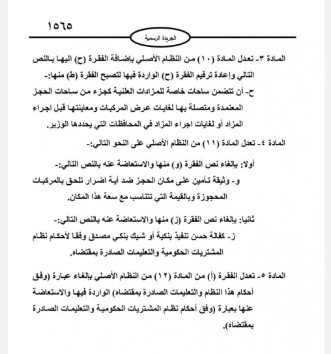 صدر في عدد الجريدة الرسمية اليوم الأحد النظام المعدل لنظام المركبات المحجوزة.