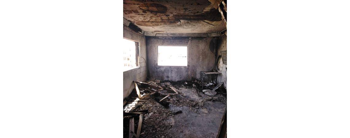 لم يبق شيء في المنزل الا والتهمته النيران فكما تقول والدة الايتام هبة فطاير " لم يسلم شيء في المنزل " فالأضرار جسيمة وبالغة وطالت النيران معظم غرف البيت ومحتوياته .