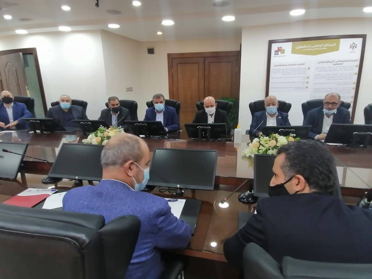 وفي نهاية الاجتماع أكد الوزيران الفايز والشمالي أن الأبواب مفتوحة لمواصلة الحوار مع مختلف القطاعات الاقتصادية للاستماع لمقترحاتها ودراستها للتخفيف عليها من تداعيات جائحة كورونا وبما يضمن استدامة فرص العمل ودفع أجورها في هذه القطاعات.