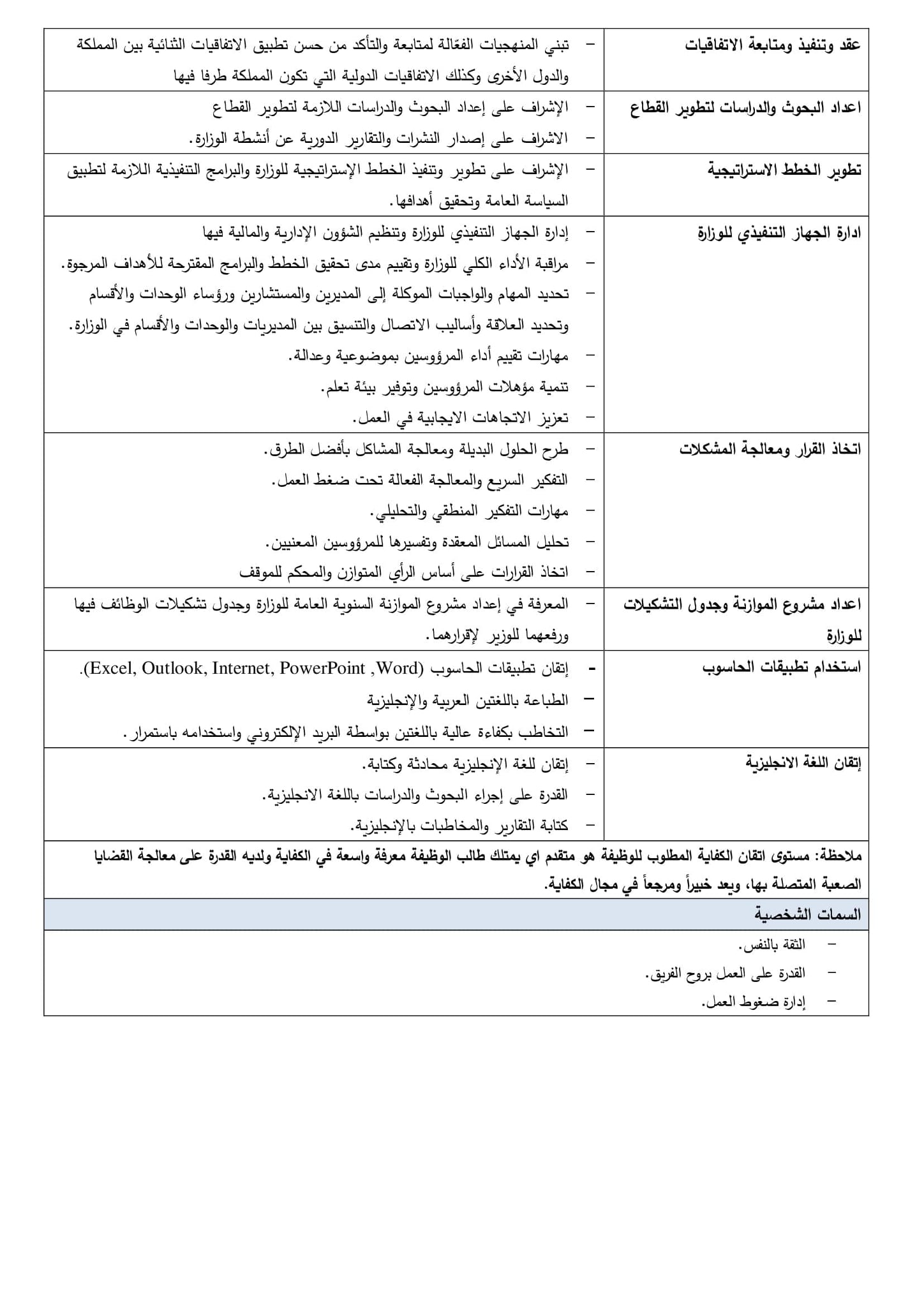 أعلنت رئاسة الوزراء الأحد، عن توفر 3 وظائف قيادية شاغرة.