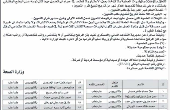 الصحة تدعو مرشحين للتعيين – أسماء