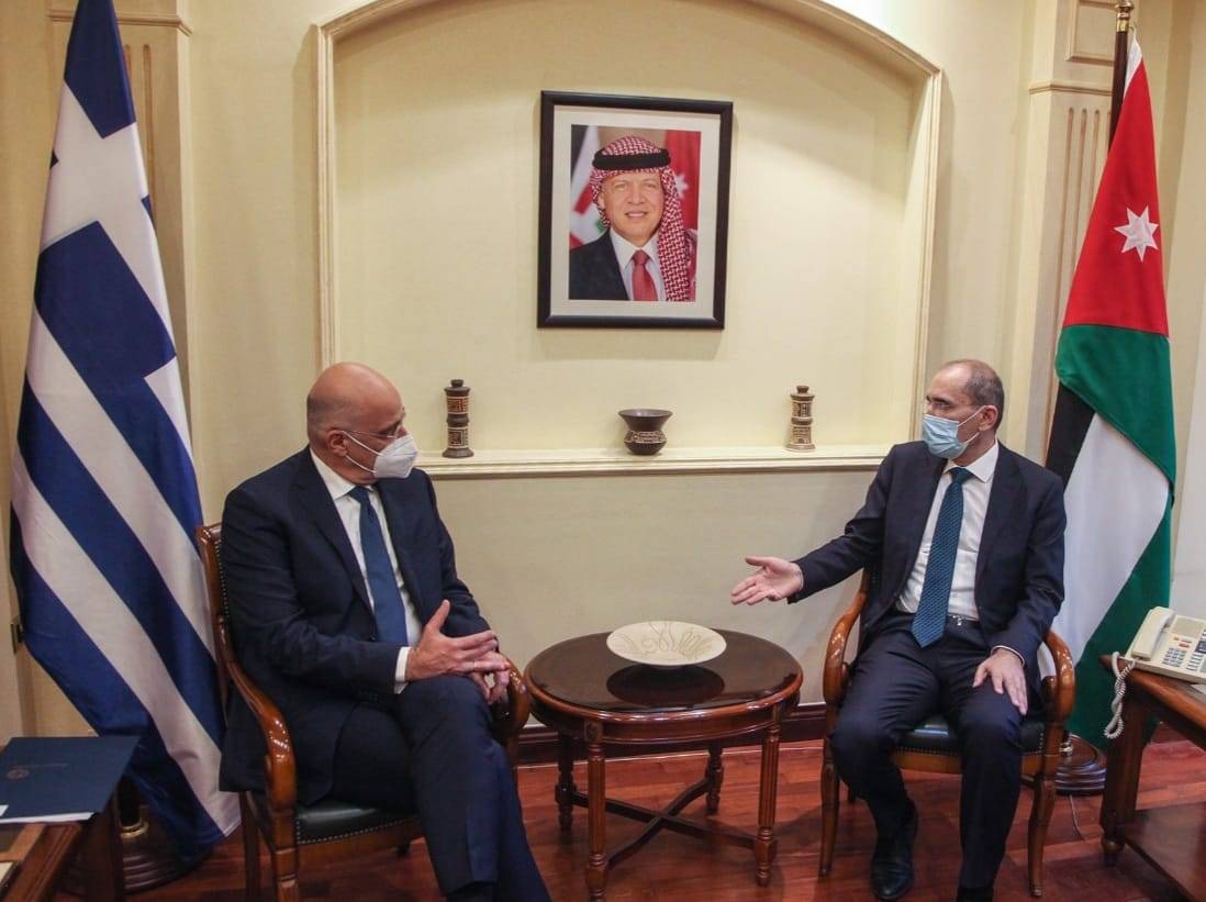 واستعرض الصفدي ونظيره اليوناني الأزمات الإقليمية وسبل تحقيق الأمن والاستقرار، مؤكدين حرصهما المشترك على تعزيز التنسيق والتعاون والعمل على تطوير العلاقات في مختلف المجالات ثنائياً وفي إطار آلية التنسيق الثلاثي مع قبرص وفي سياق الشراكة بين المملكة والاتحاد الأوروبي.
