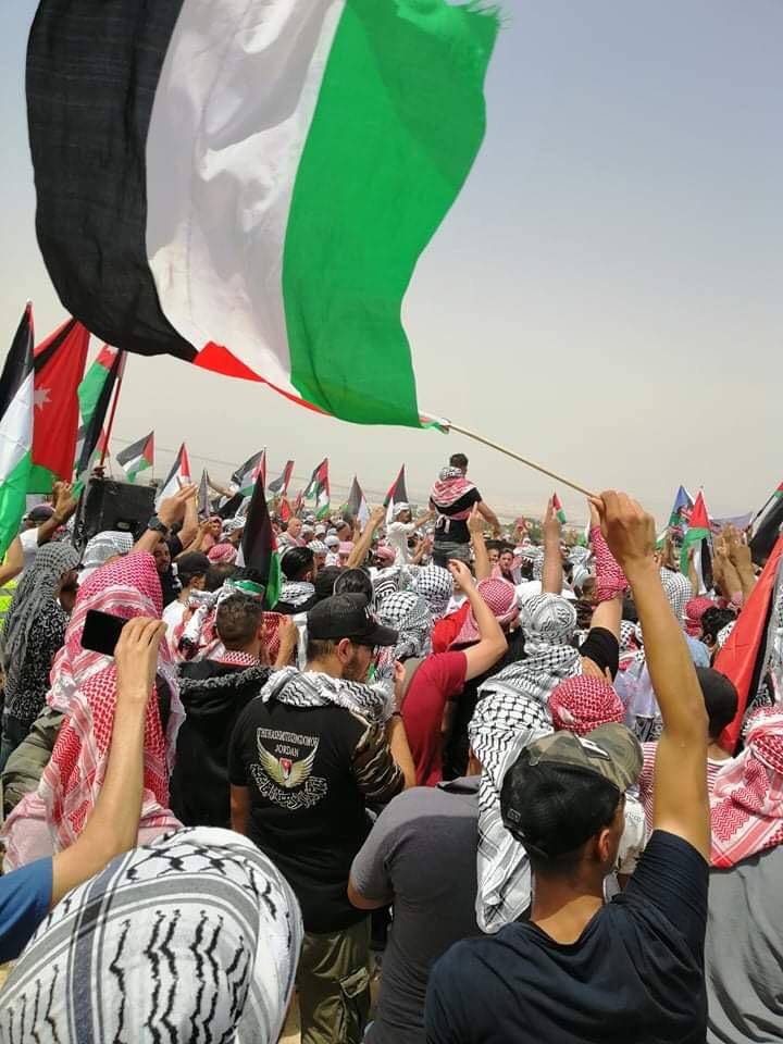 بدأ الاردنيون يهتفون باسم فلسطين والقدس بعد وصولهم موقع صرح شهداء الكرامة محتفلين بانتصار المقاومة في غزة بعد حصار دام مدة 11 يوما