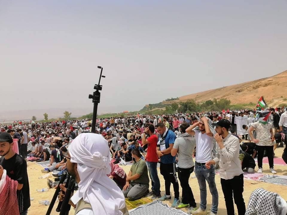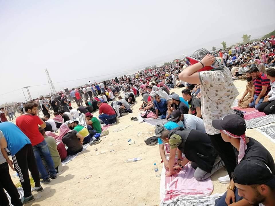 : قام الأردنيون بتأدية فرض صلاة الجمعة على الحدود الاردنية-الفلسطينية اليوم.