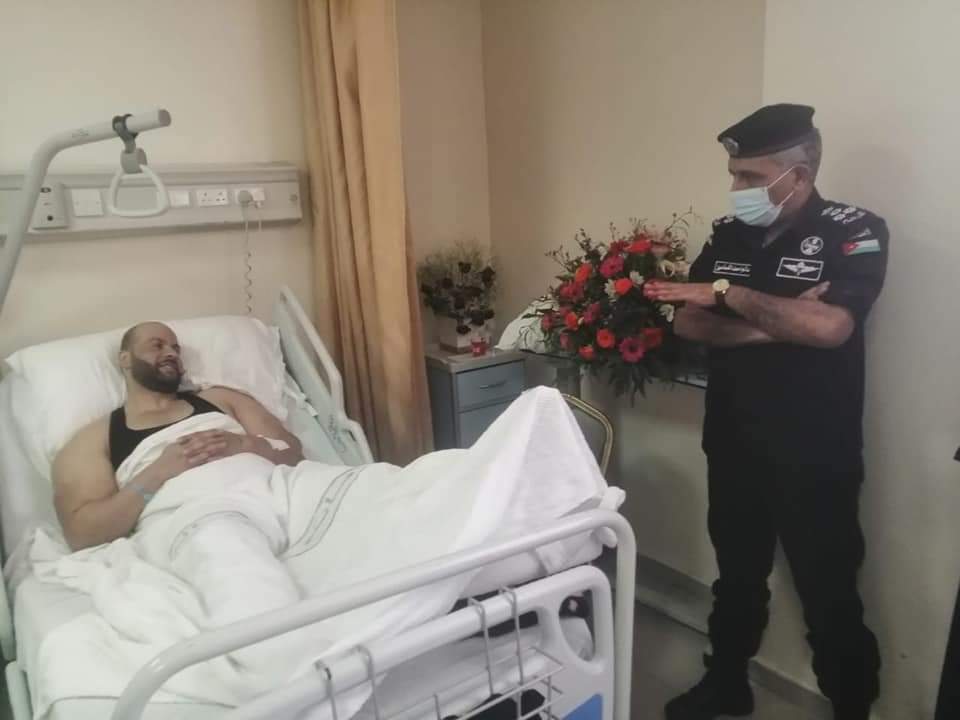 حيث اطمأن العميد الشماسين على الحالة الصحية للوكيل علام ونقل تحيات عطوفة مدير الأمن العام اللواء حسين الحواتمة والتمنيات له بالشفاء العاجل، بدوره أكد الوكيل علام بأن نشامى الأمن العام نذروا أنفسهم وأرواحهم فداءً للوطن وقائد الوطن وشعبنا العظيم .