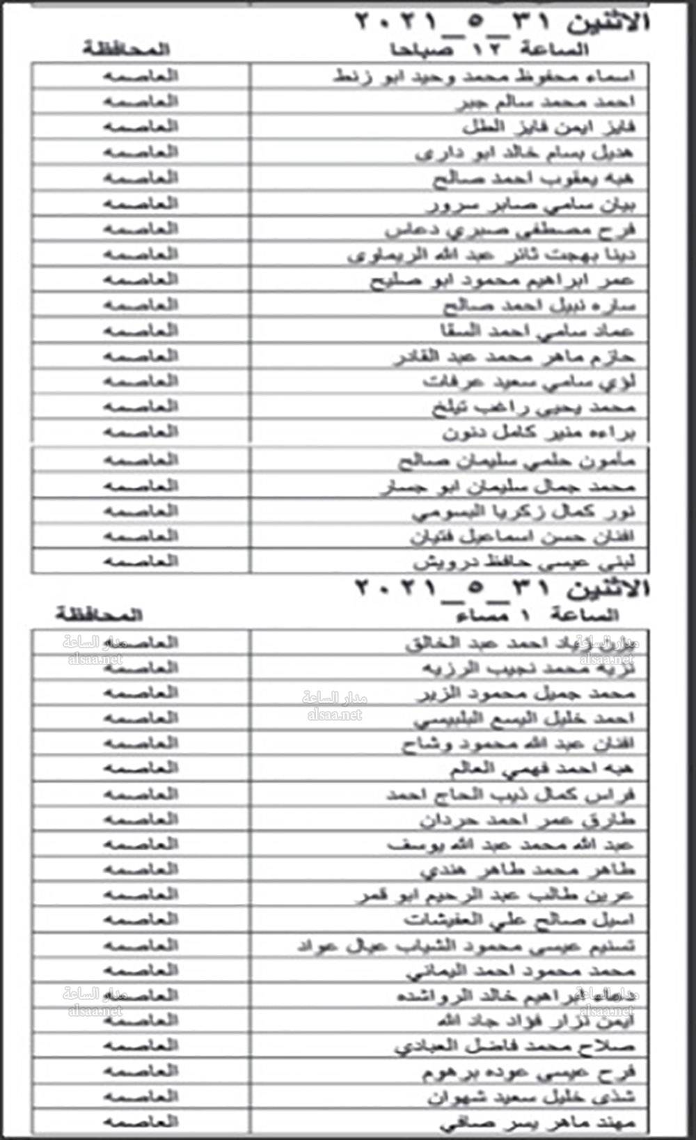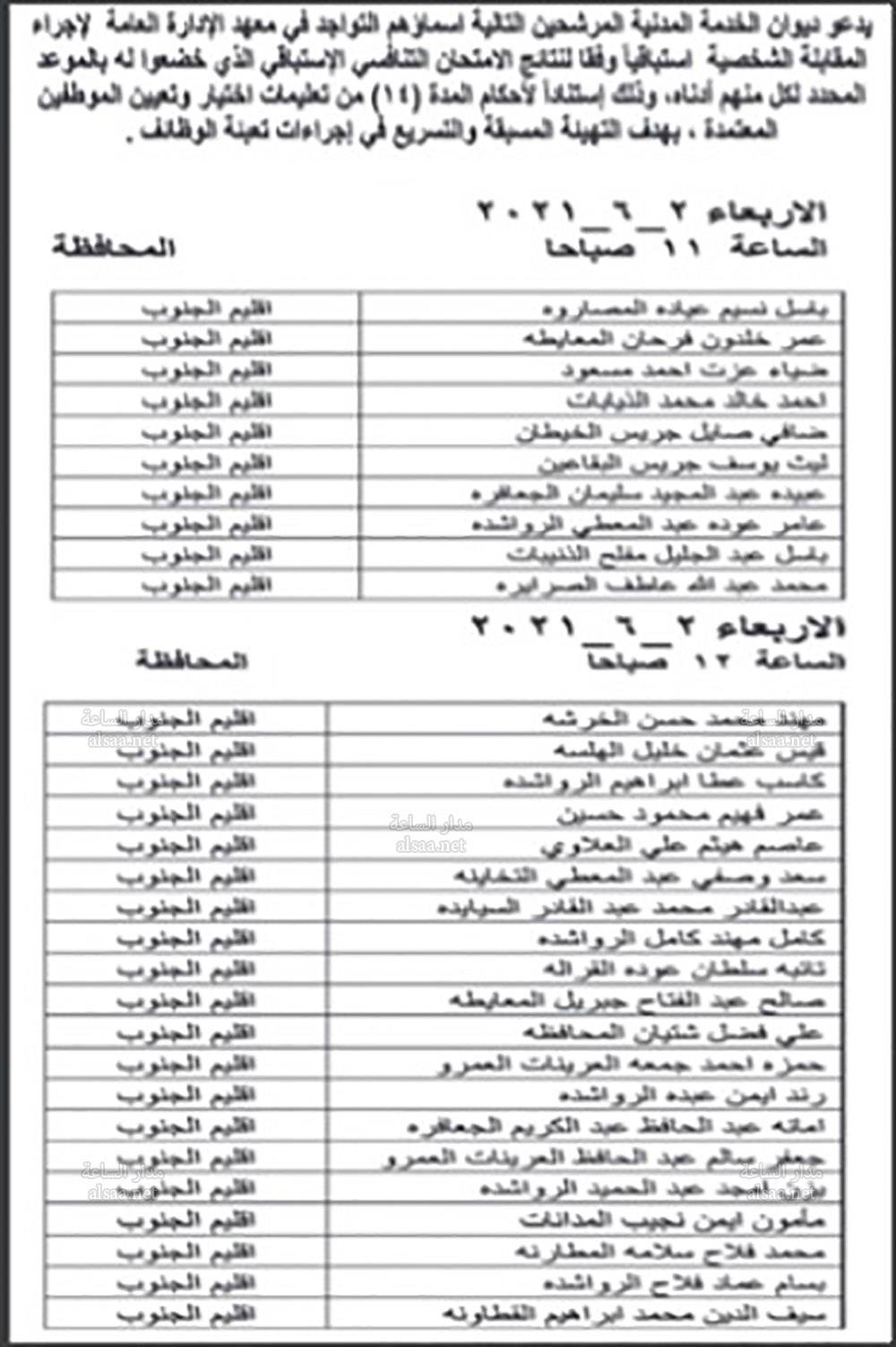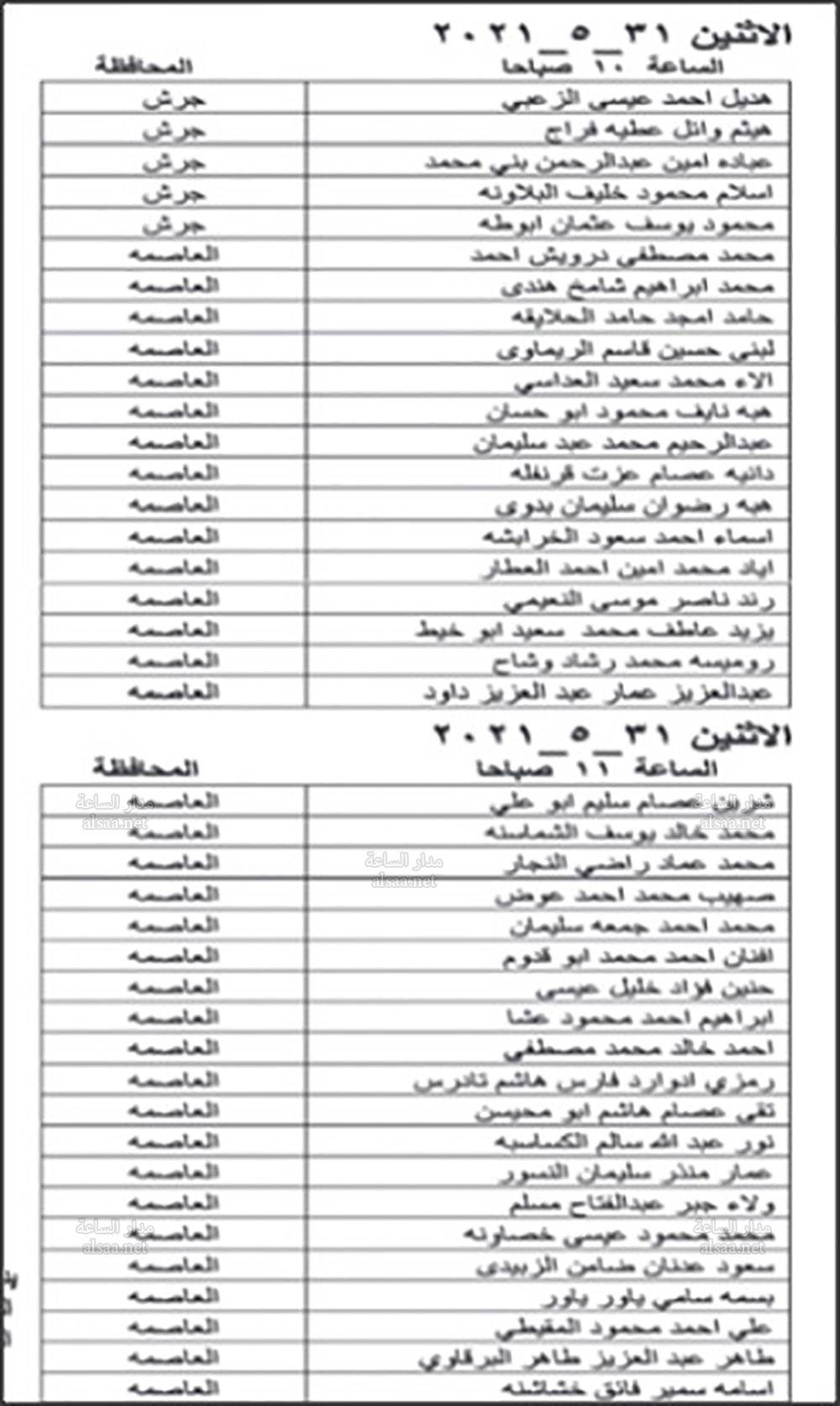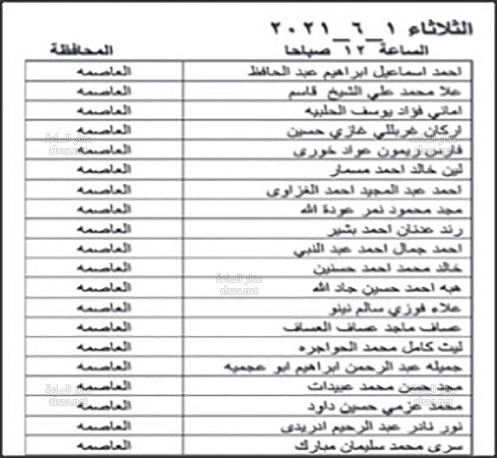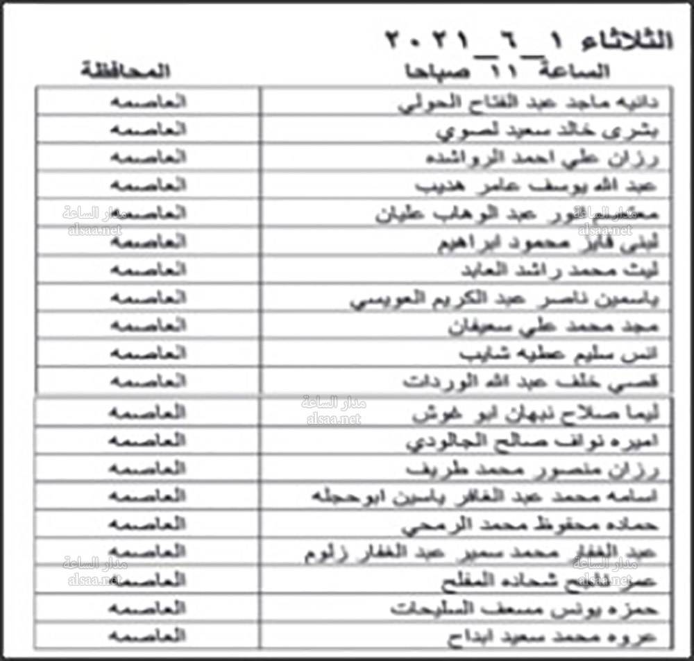 دعت وزارة الصحة بالتنسيق مع ديوان الخدمة المدنية اليوم الخميس المرشحين المبينة اسماؤهم ادناه من حملة شهادة البكالوريوس في الطب العام والذين اجتازوا الامتحان التنافسي بنجاح، وفقا لأحقيتهم التنافسية لغايات اجراء المقابلة الشخصية وبواقع ثلاثة مرشحين لكل وظيفة شاغرة او العدد المتوافر وفقا لنتائج الامتحان التنافسي.
