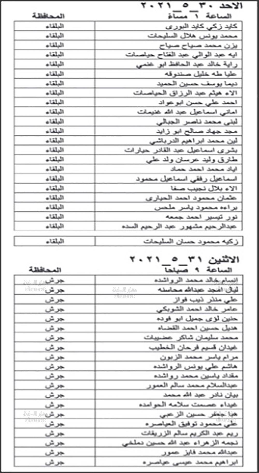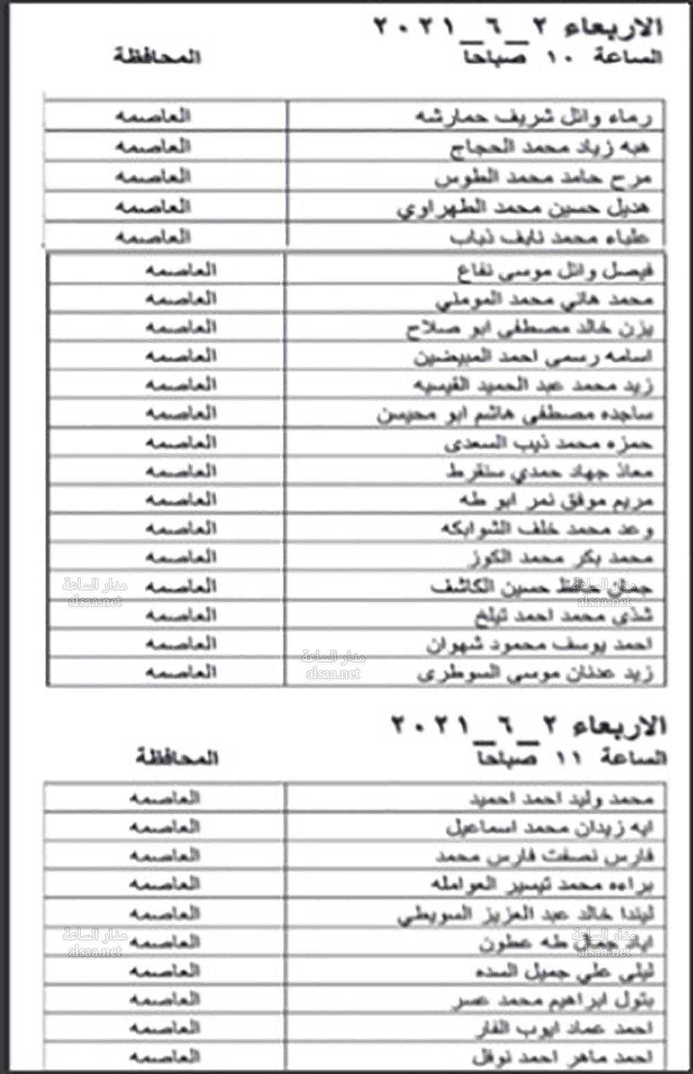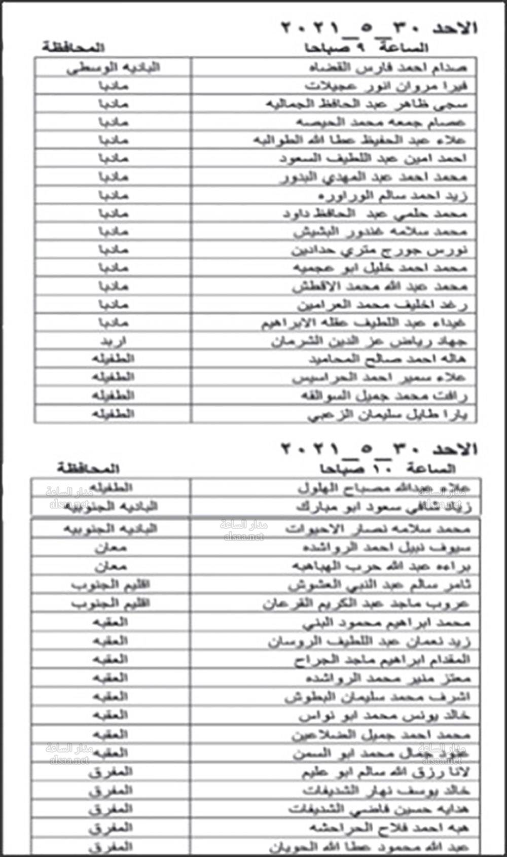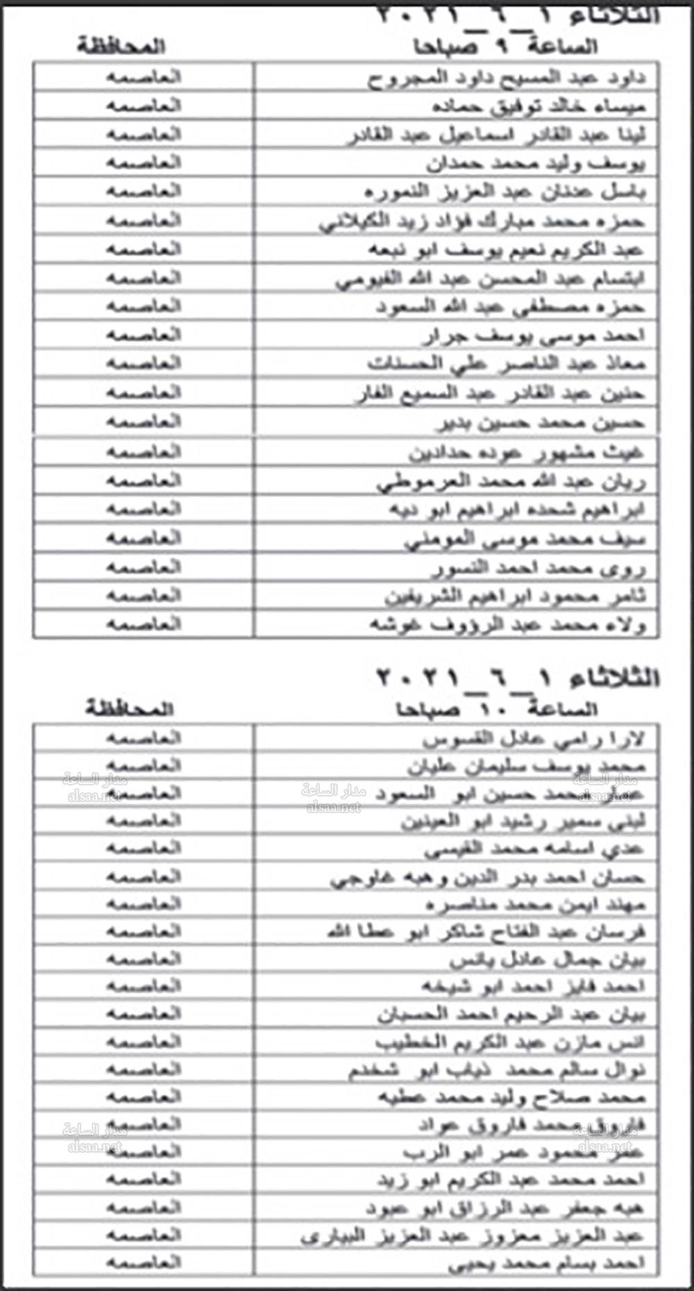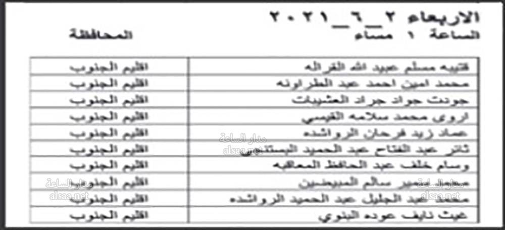 دعت وزارة الصحة بالتنسيق مع ديوان الخدمة المدنية اليوم الخميس المرشحين المبينة اسماؤهم ادناه من حملة شهادة البكالوريوس في الطب العام والذين اجتازوا الامتحان التنافسي بنجاح، وفقا لأحقيتهم التنافسية لغايات اجراء المقابلة الشخصية وبواقع ثلاثة مرشحين لكل وظيفة شاغرة او العدد المتوافر وفقا لنتائج الامتحان التنافسي.