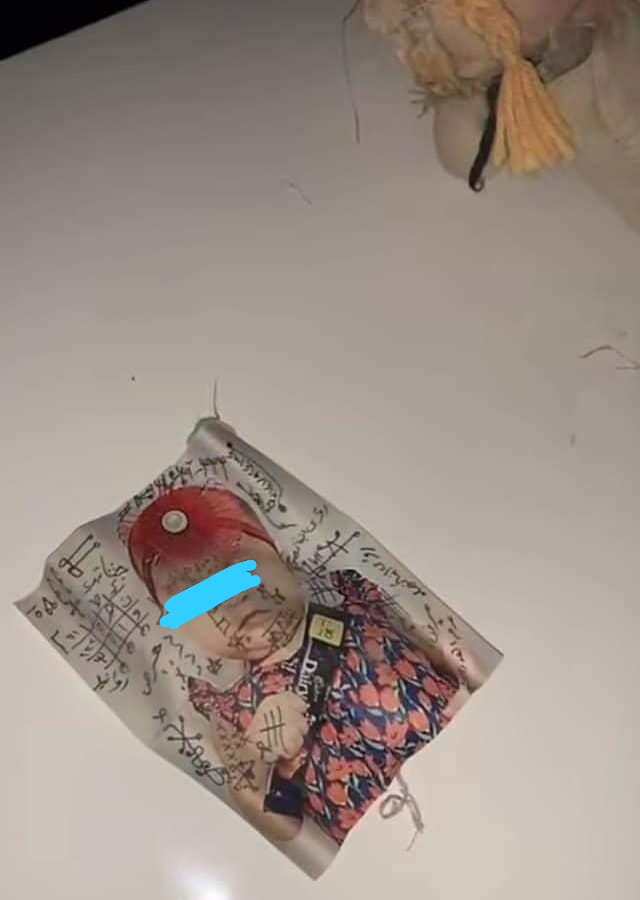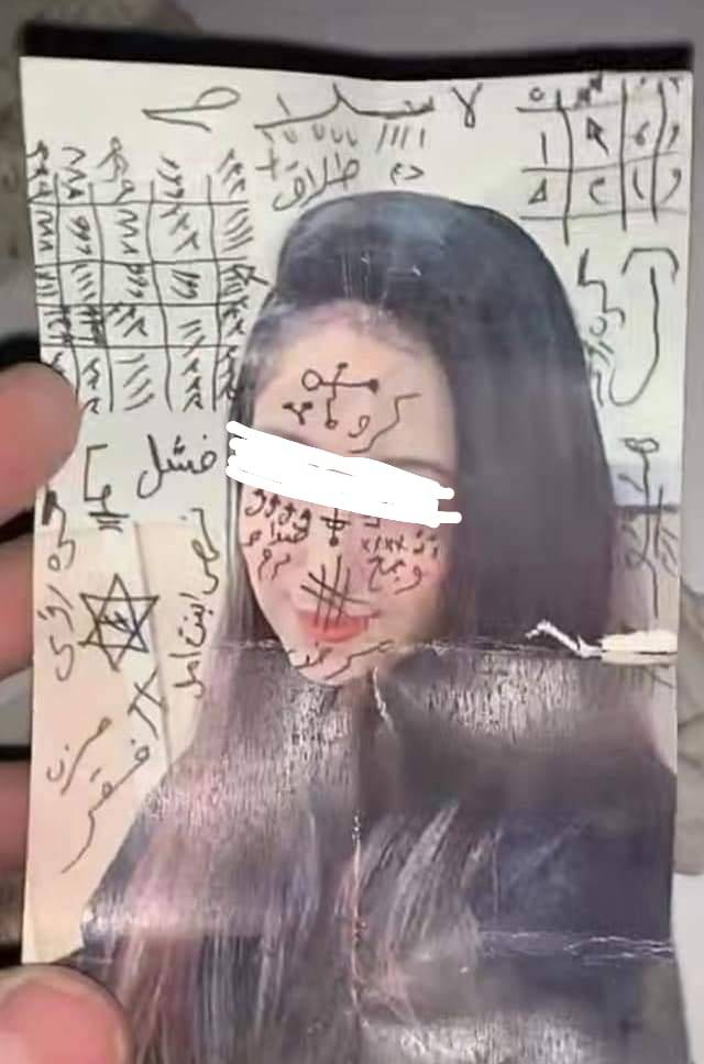 رصدت نيروز منشورًا يتداوله نشطاء مواقع التواصل الاجتماعي يتبين من خلاله وجود صورًا تعود لاشخاص وضع عليها طلاسم و اعمالًا من الشعوذة التي تسمى بالسحر في إحدى المغر بمحافظة اربد .