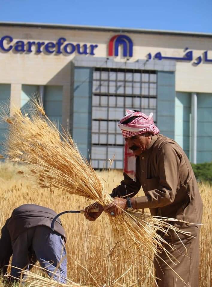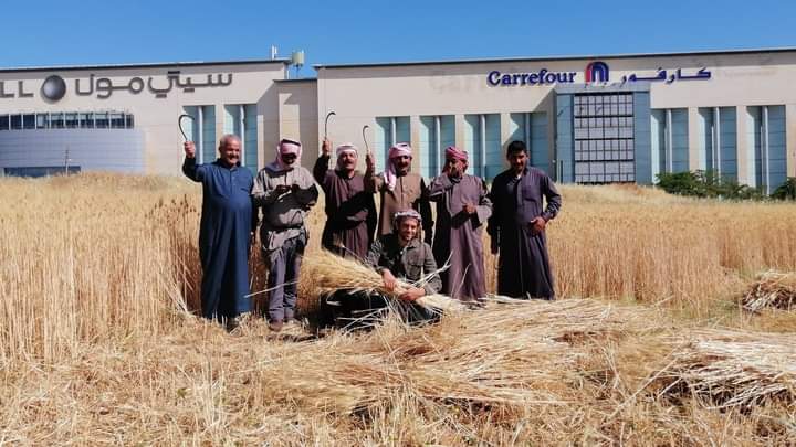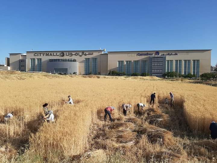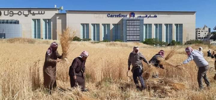 نيروز _ محمد العويمر _ يقول ربيع زريقات صاحب المبادرة بدأنا حصاد القمح في عمان مقابل كارفور وسيتي مول في قلب العاصمة عمان وهي أراضي ومساحات مختلفة في عمان تم زراعتها بشكل جماعي تضامني واليوم بدأنا الحصاد برفقة متطوعين.