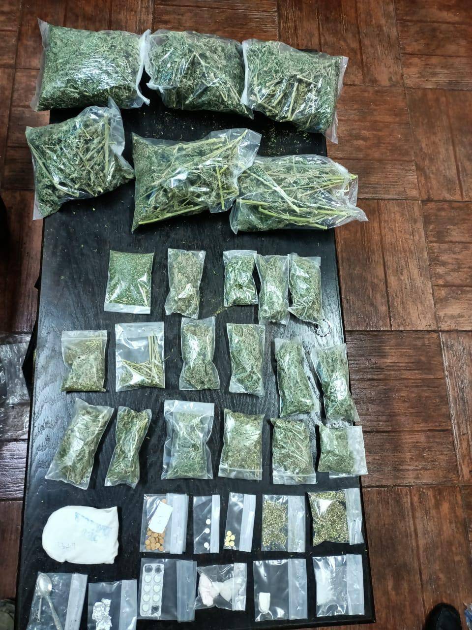 • ضُبطت خلال المداهمة ثلاثة اسلحة نارية وكميات كبيرة من مادة الماريجوانا المخدرة المزروعة والمنشفة المعدة للبيع اضافة الى كميات من الحبوب المخدرة .