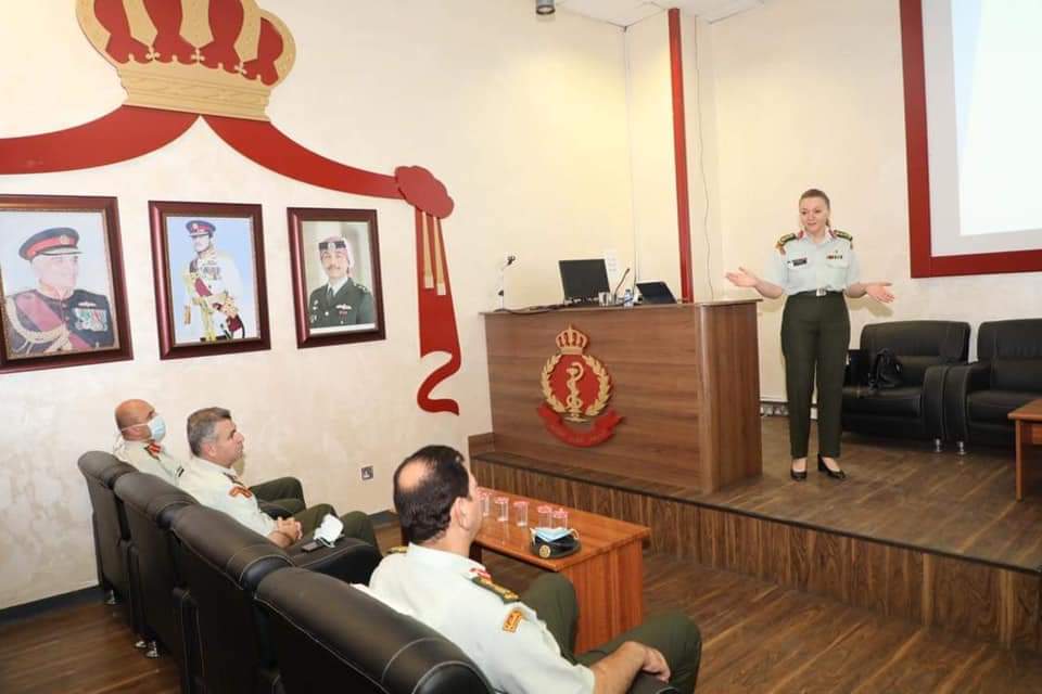 والقت العقيد الطبيب رحاب غنما رئيس فريق الجودة في الخدمات الطبية الملكية بحضور رؤساء شعب الموقع الالكتروني محاضرة بعنوان تسويق الخدمات الطبية الملكية داخل وخارج المملكة واستعرضت أساليب تطوير الموقع الالكتروني والمنصه الالكتروني وتسويق الخدمات العلاجية من خلال برنامج متكامل وبما يدعم السياحة العلاجية في المملكة الاردنيه الهاشمية.
