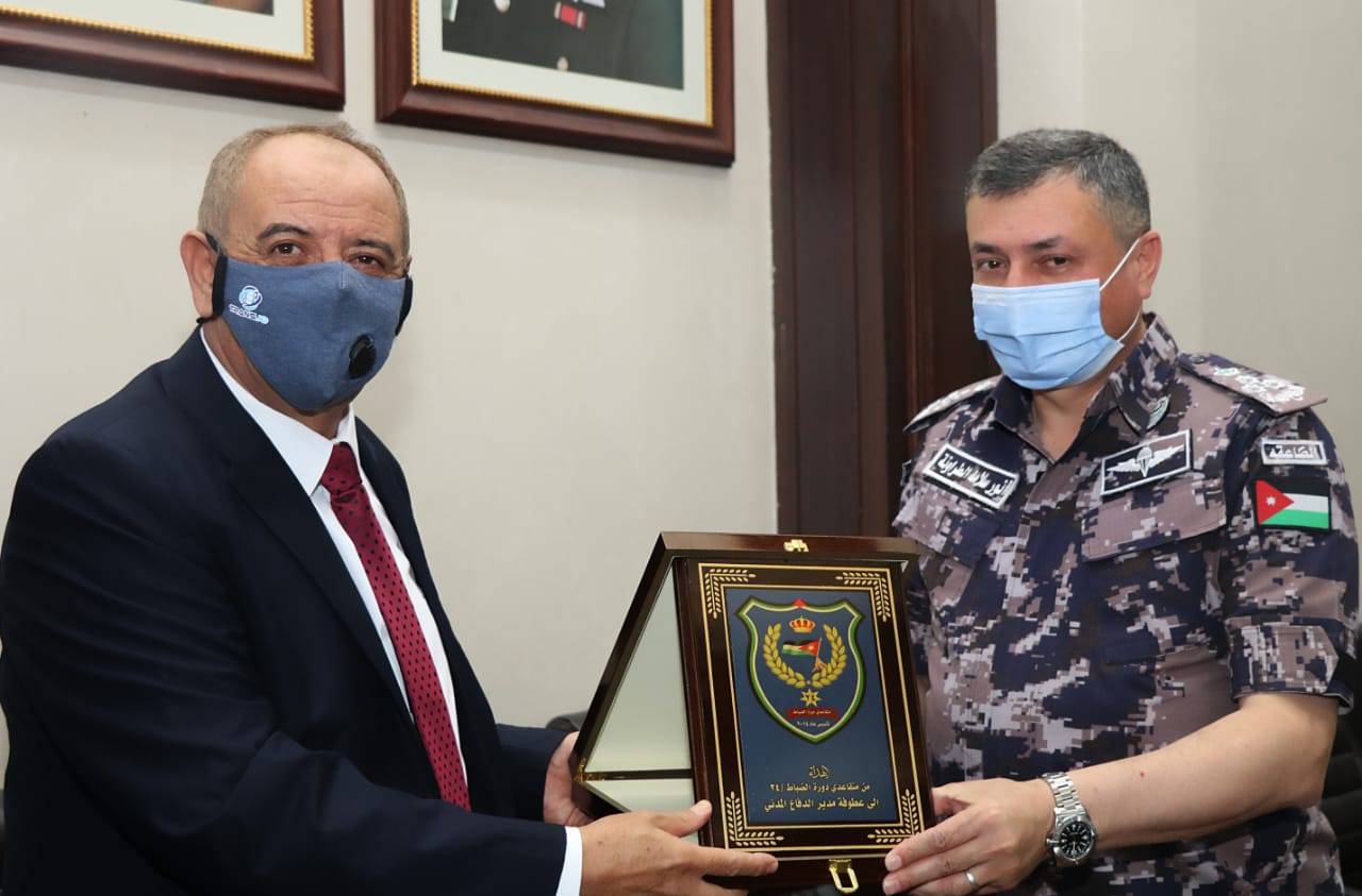 وفي نهاية اللقاء الذي جمع اللجنة الادارية لمتقاعدي دور الضباط ال24 مع مدير عام الدفاع المدني ، قدمت اللجنة درع متقاعدي دورة الضباط ال24 لمديرعام الدفاع المدني العميد انور الطراونة .