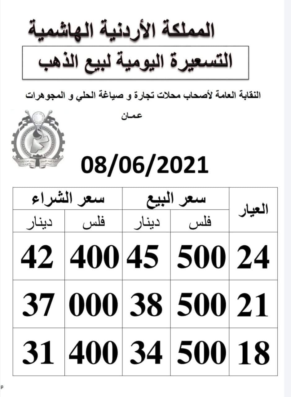ويشمل التقريــر أسعار المعدن عيارات ( 24، 21، 18) ، كونها الأكثر تداولا في الأردن.