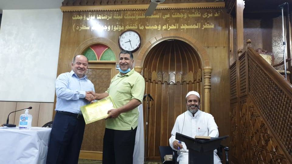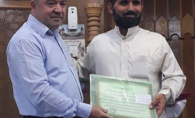 وسلم البيطار الشهادات إلى مستحقيها بحضور مشرف دار تحفيظ القرآن الكريم في مجمع البيطار الإسلامي فضيلة الشيخ ماجد الغصين.