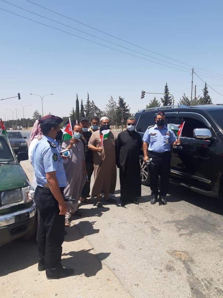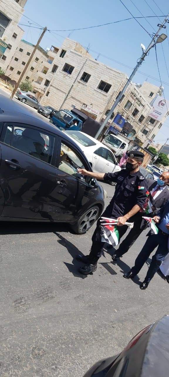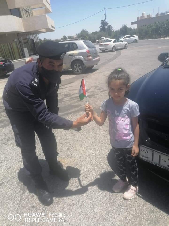 كما قامت الشرطة المجتمعية في مديريات شرطة شمال وشرق وجنوب عمان بتوزيع العلم الأردني وملصقات المئوية على المواطنين والمركبات ضمن اختصاص شفا بدران والمقابلين والأشرفية والمنارة والجويدة والقويسمة .