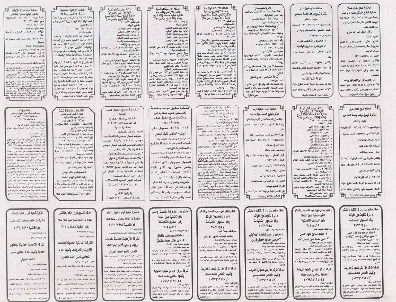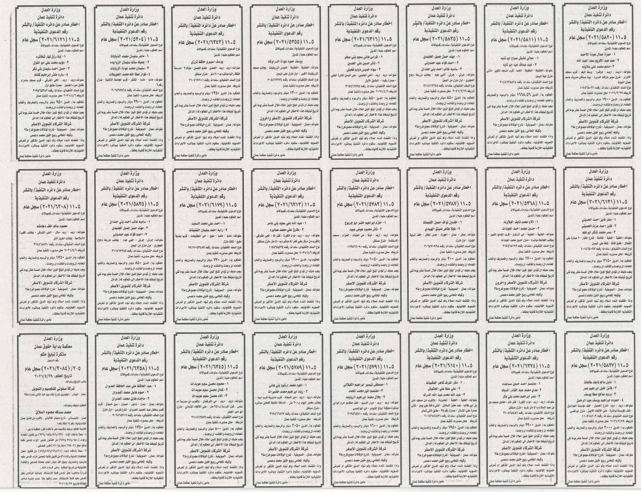 كما صدرت اخطارات عن دوائر التنفيذ في المملكة كما هو تالياً: