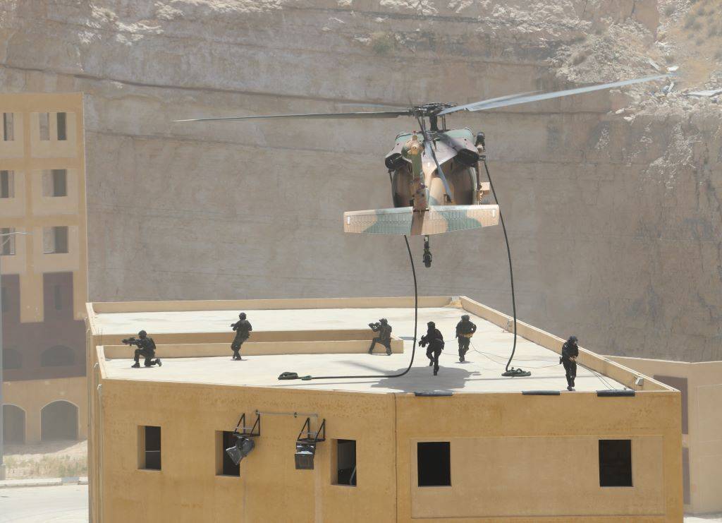 واشتمل التمرين على فرضية إحتلال مجموعة إرهابية هدف في قرية حدودية، وعلى عمليات الاستطلاع ونقل القوة المشتركة بين عناصر مكافحة الإرهاب ومجموعة القوات الخاصة والقدرات الخاصه (K9) والمسعفين الفوريين الميدانيين ورمايات القناصين جواً بالطائرات العمودية المقاتلة، وعمليات إنزال الحبل السريع التي أظهرت الدقة والمهارة العالية للمشاركين في تطهير الهدف من العناصر الإرهابية.