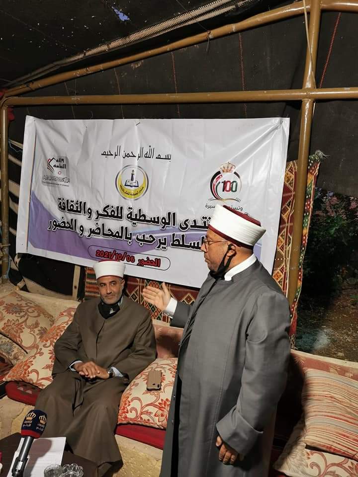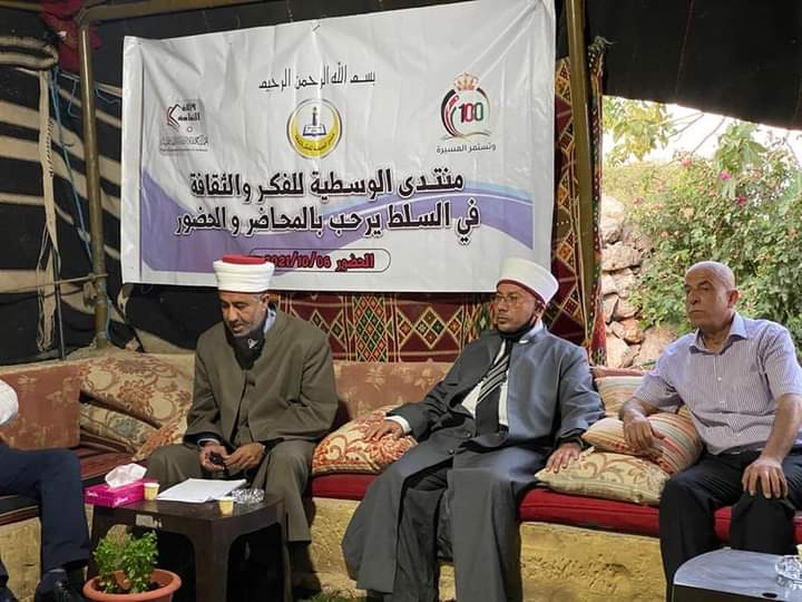 أقام منتدى الوسطية للفكر والثقافة في السلط ندوة بعنوان التسامح في مسيرة الدولة الأردنية حيث تحدث د محمد عارف السعد مفتي دير علا مندوبا عن مفتي عام المملكة الشيخ عبد الكريم الخصاونة قال بأن شريعة الإسلام تقوم على التسامح مبينا ان التسامح والوئام الديني في الأردن بين المسيحيين والمسلمين هو أروع مثال على ذلك ونحن في الأردن في ظل القيادة الهاشمية نعيش في هذا البلد بسلام وتسامح ولا نشهد طائفية ولا تطرف وتحدث د هاني خليل عابد مفتي البلقاء والذي بين من خلال هذه المناسبة مسيرة التسامح في ظل الدولة الأردنية وقال بأننا نقتدي برسول الله الذي علمنا الرحمة والتسامح كماوتحدث عن دور الهاشمين في جمع الكلمة والمبادرة للوفاق والاتفاق مع الدول العربية والإسلامية وتحدث عن رسالة عمان والرسائل الملكية التي تدعو للحكمة والتصالح والرأي الحسن وبين دور القيادة الهاشمية في رعاية المقدسات الإسلامية والمسيحية في القدس من خلال الوصاية الهاشمية وكان أحيا عربيات رئيس المنتدى قد رحب بالحضور مشيدا بمسيرة التسامح في الأردن التي يحافظ عليها الهاشميون ويتمثلها الناس في هذا البلد الطيب