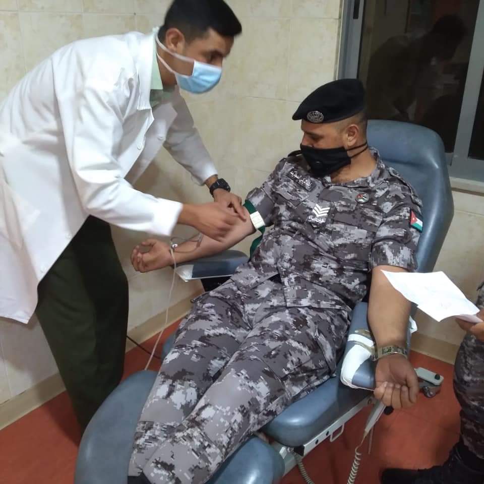 لبت مرتبات كتيبة الدرك (٨) في محافظة الطفيلة النداء بالتبرع بالدم لأحد المرضى والذي يرقد على سرير الشفاء في مستشفى الأمير زيد العسكري لحاجته لعدد من وحدات الدم.