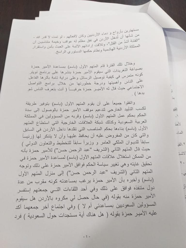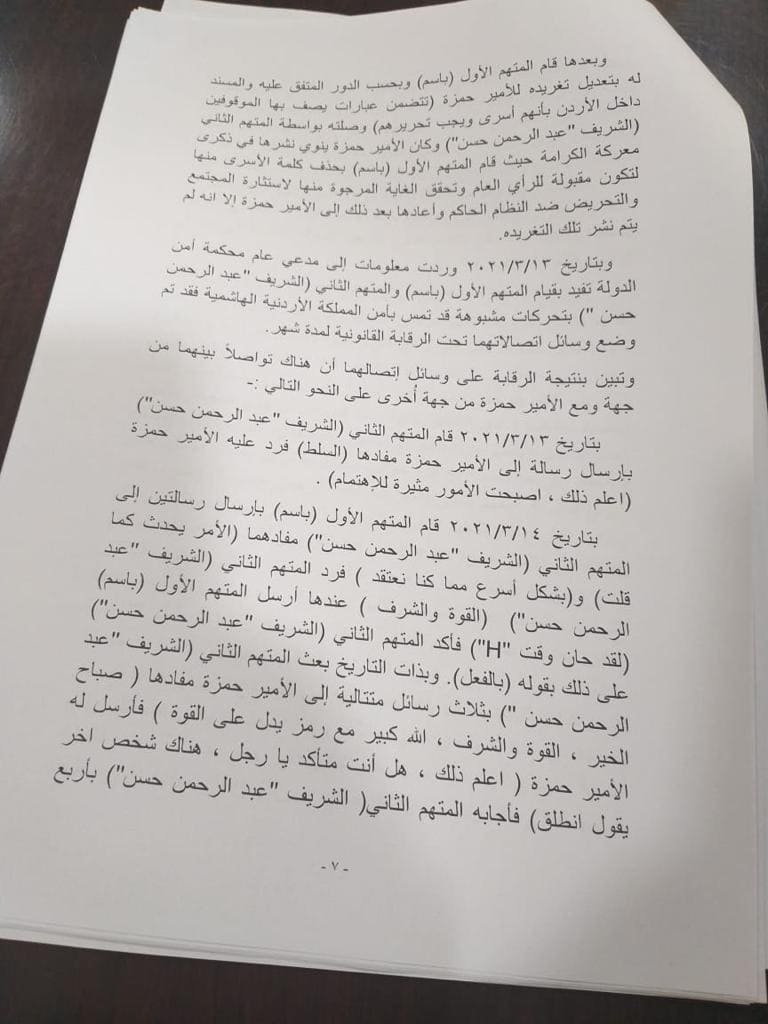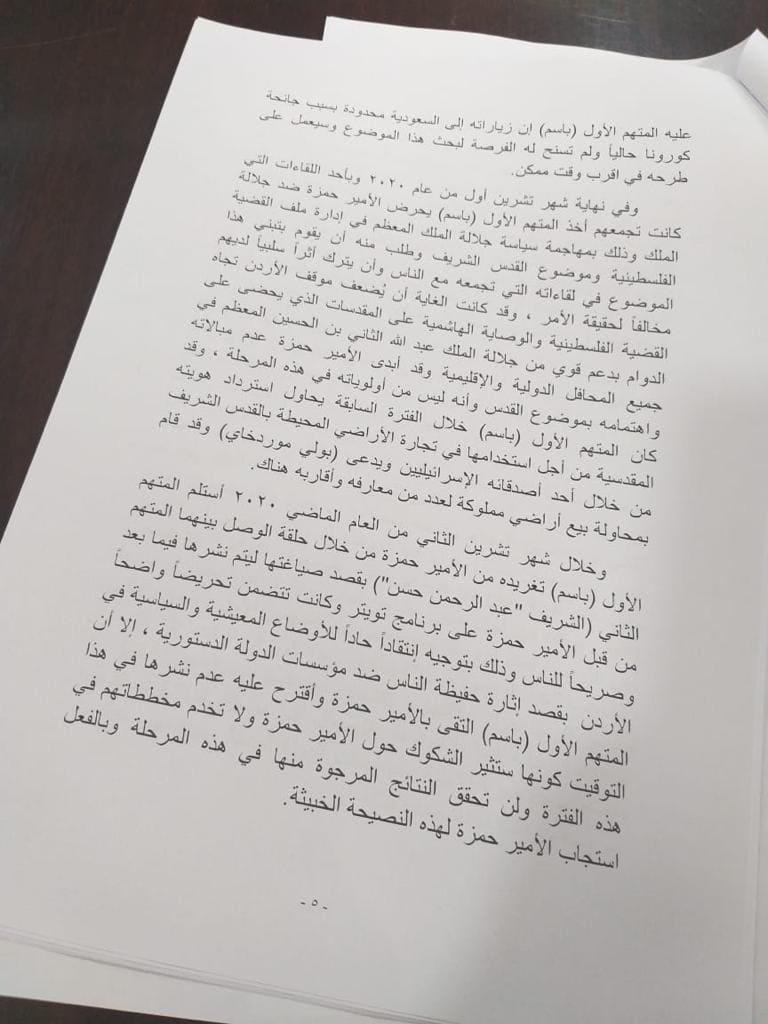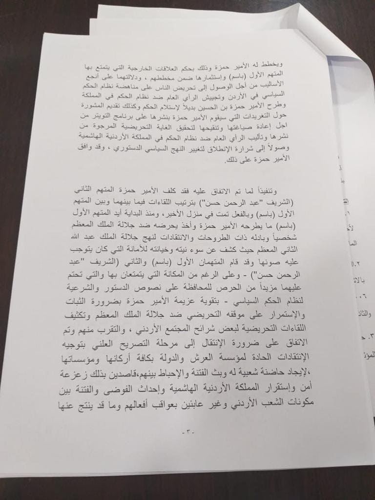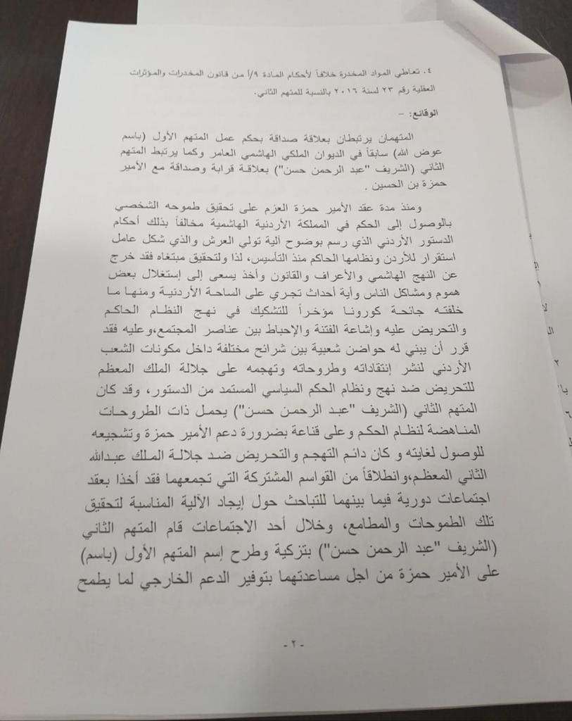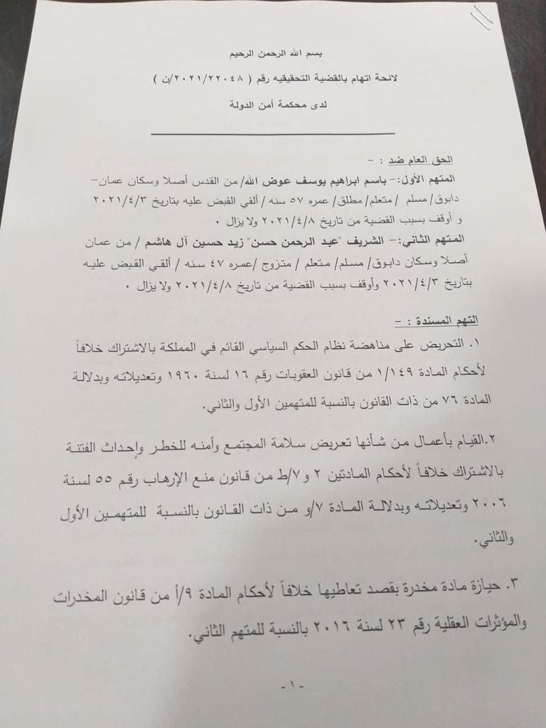 شاهد...تفصيل لائحة الاتهام الموجهه بحق المتهمين الشريف زيد حسين وباسم عوض الله