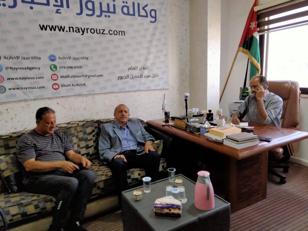 في بداية الزيارة رحب الجبور بضيف نيروز , وقدم ايجازا مختصرا عن سير عمل الوكالة , مؤكدا فيه ان الوكالة استطاعت بفضل الله  الاستحواذ على ثقة متابعيها لما  تتمتع به مصداقية عالية , وأن يكون لها حضور مميز في مختلف المجالات من خلال تغطيتها لكافة الأخبار المحلية والعربية والعالمية والمبادرات وقصص النجاح المختلفة , وعلى مدار الساعة من خلال شبكة من الصحفيين المنتشرين في محافظات المملكة و الدول  العربية الشقيقية .