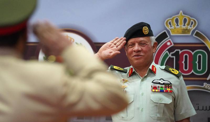 وكان في استقبال جلالته لدى وصوله الكلية، رئيس هيئة الأركان المشتركة اللواء الركن يوسف أحمد الحنيطي، وآمر كلية الدفاع الوطني الملكية الأردنية.