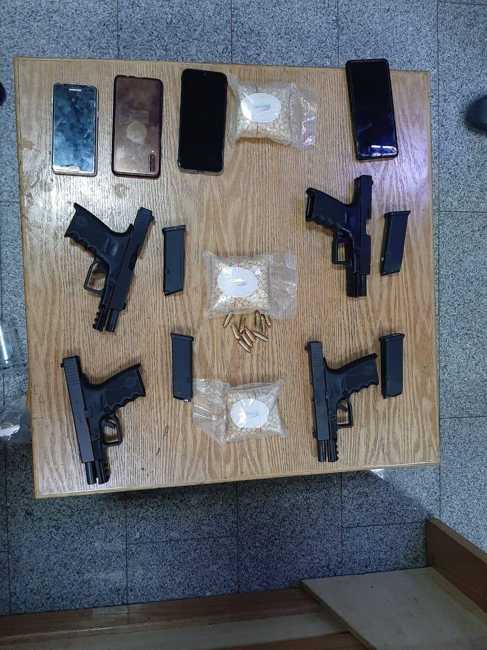 بعد التأكد من حيازته ونقله لكمية من المواد المخدرة من احدى محافظات الشمال للعاصمة جرت مداهمته داخل مركبته والقاء القبض عليه وضُبط بحوزته اربعة اسلحة نارية و6000 حبة مخدرة .