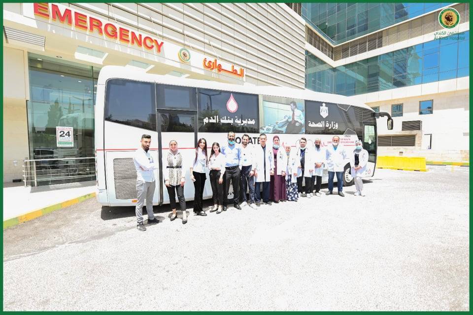 من جهته اشاد مدير عام المستشفى الدكتور علي حياصات الذي تواجد في مكان الحدث ، بالتفاعل مع الحملة واندفاع العاملين في المستشفى للتبرع بالدم وحرصهم على ان يكونوا ايجابيين مع الحملات الانسانية والصحية وتوفير وحدات دم بالتعاون مع بنك الدم الوطني للتبرع بها عند حاجة اي حالة طبية لكميات من وحدات الدم.