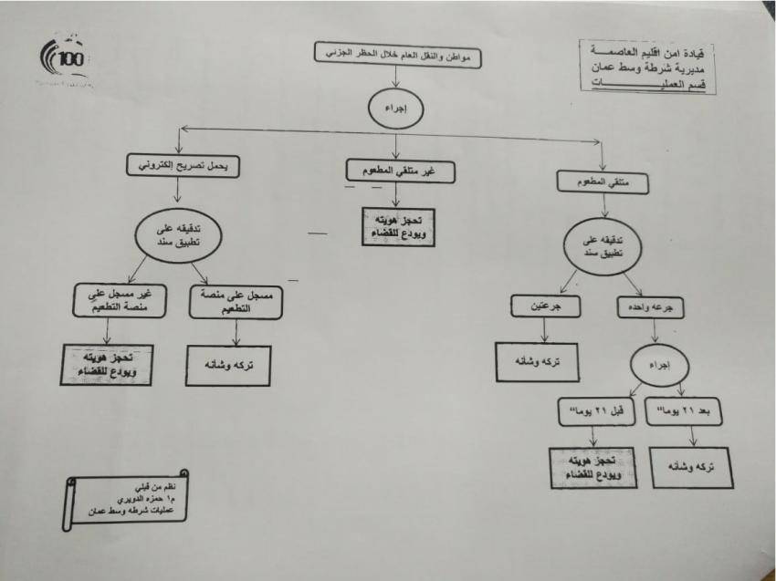 نشرت قيادة امن اقليم العاصمة - مديرية شرطة وسط عمان الاجراء المتبع خلال الحظر الجزئي، وفق ما هو تالياً: