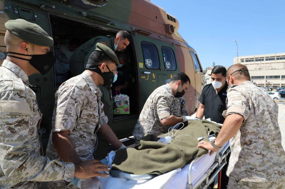 بتوجيهات من جلالة الملك عبدالله الثاني القائد الأعلى للقوات المسلحة الأردنية، أوعز رئيس هيئة الأركان المشتركة اللواء الركن يوسف أحمد الحنيطي إلى سلاح الجو الملكي الأردني، اليوم الأربعاء، بإرسال طائرة مزودة بطاقم طبي متخصص من الخدمات الطبية الملكية لاخلاء الطفلة اللبنانية سهيلة محمد الكسار (8 سنوات) والتي تعرضت لعيار ناري في عامودها الفقري في دولة لبنان الشقيق.