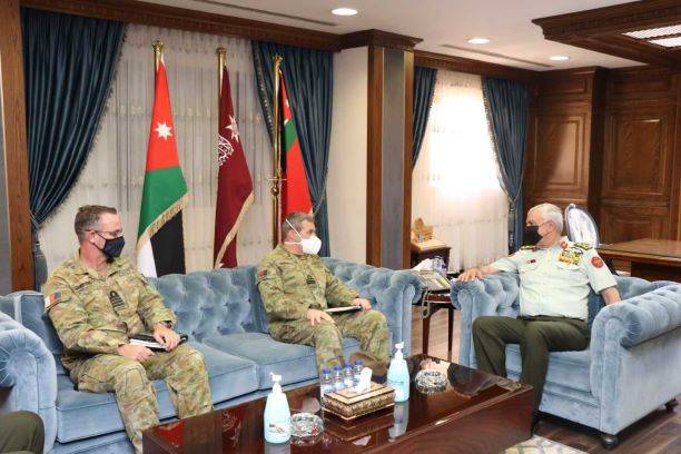 استقبل رئيس هيئة الأركان المشتركة اللواء الركن يوسف أحمد الحنيطي، اليوم الأحد، في مكتبه بالقيادة العامة وفداً عسكرياً أسترالياً برئاسة قائد قوة الواجب المشتركة 633 والمسؤولة عن العمليات والقوات الأسترالية في الشرق الأوسط اللواء بحري روث ويل.