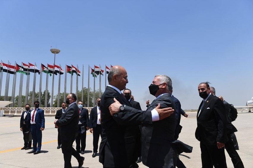وكان في استقبال جلالته لدى وصوله مطار بغداد الدولي الرئيس العراقي برهم صالح، وعدد من كبار المسؤولين العراقيين والسفير الأردني في بغداد وأركان السفارة.