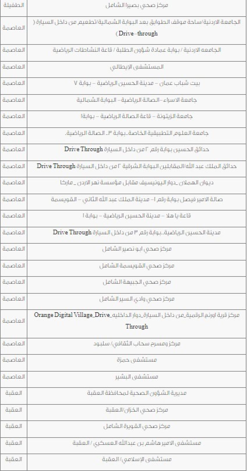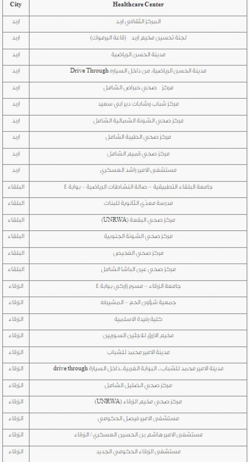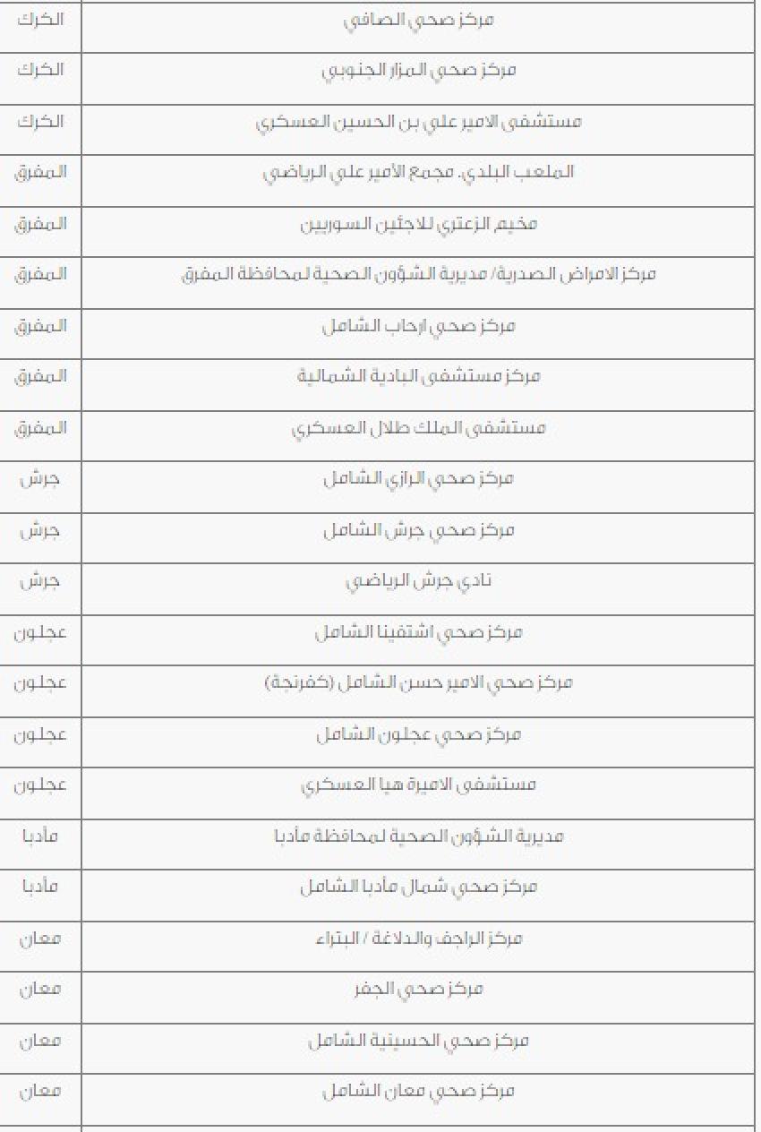 دعت وزارة الصحة اليوم الاثنين، الأشخاص الذين تزيد أعمارهم عن 50 عاما التوجه الى عدد من مراكز تلقي المطعوم دون موعد مسبق او تسجيل على المنصة. وتاليا المراكز التي حددتها الوزارة: