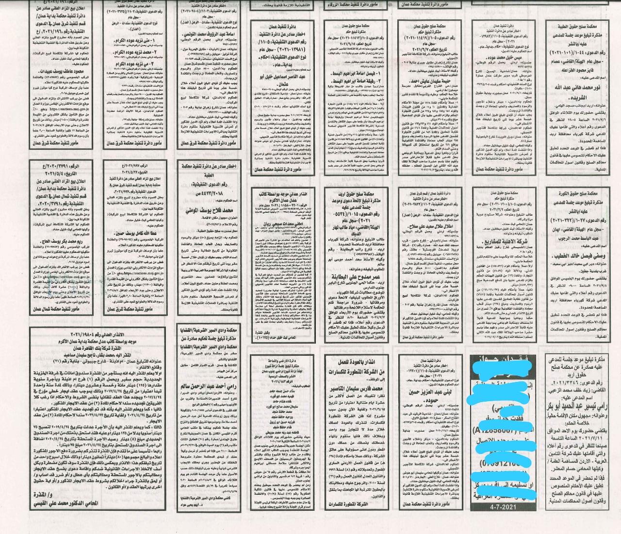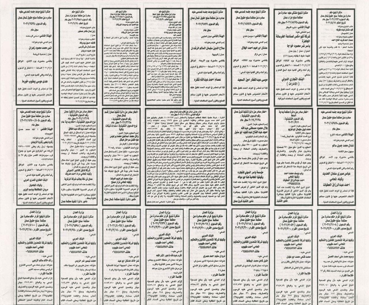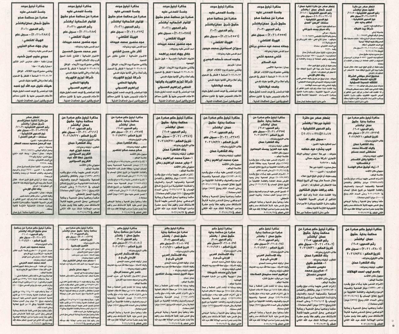 أعلنت محاكم اليوم الاحد 2021/7/4.. عن مذكرات تبليغ مواعيد جلسات المحاكمة للمشتكى عليهم المذكورين في الجدول ادناه. وطلبت المذكرات مراجعة المحاكم المبينة إزاء اسم كل منهم في المواعيد المبينة أدناه.