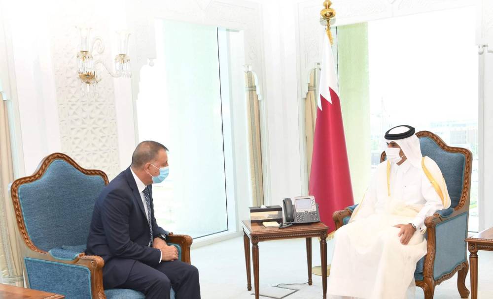 استقبل معالي الشيخ خالد بن خليفة بن عبدالعزيز آل ثاني رئيس مجلس الوزراء ووزير الداخلية قبل ظهر اليوم، وزير الداخلية مازن الفراية والوفد المرافق بمناسبة زيارتهم للبلاد.