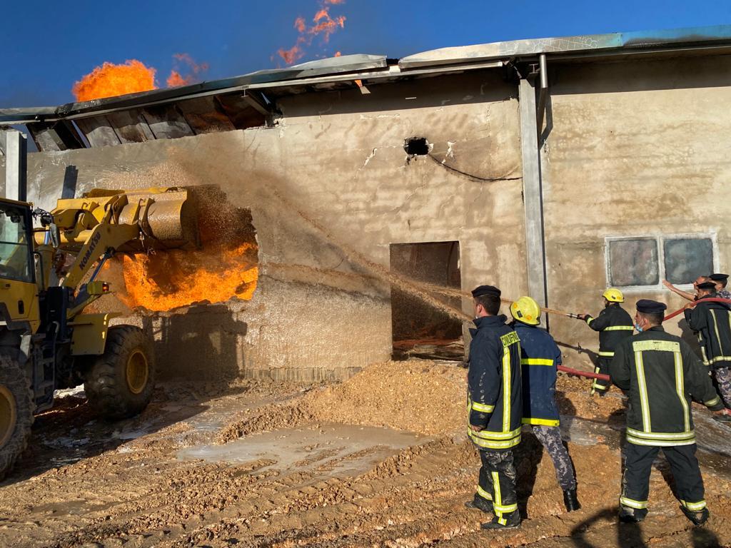 الدفاع المدني يخمد حريقاً داخل مستودع تابع لأحد المصانع في محافظة إربد