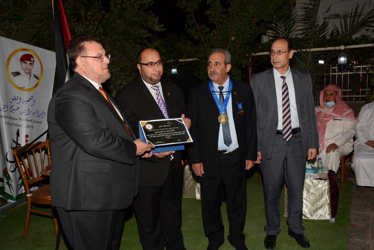 الاستاذ غسان الزيود شكر للداودي مبادرته الكريمة لتكريم الجمعية مشيراً إلى أن هذا الوسام هو تكريم لكل فرد من أفراد الجمعية وكوادرها المتميزة والتي تعهدت على مواصلة الليل بالنهار في خدمة القطاع الخيري والإنساني، والمساهمة الايجابية في العمل التنموي لمجتمعاتنا، وشارك في تقليد الأوسمة سعادة النائب عمر الزيود.