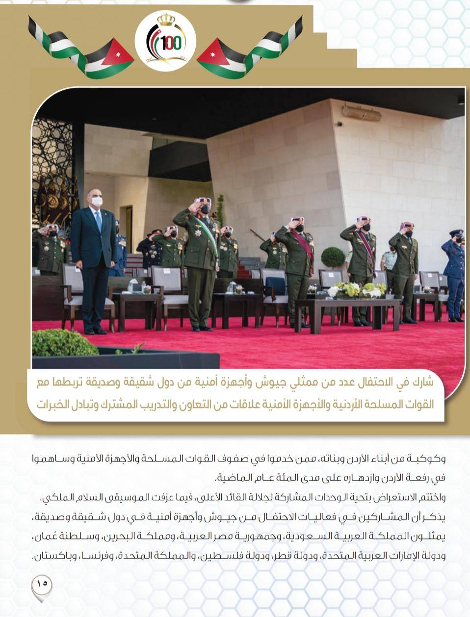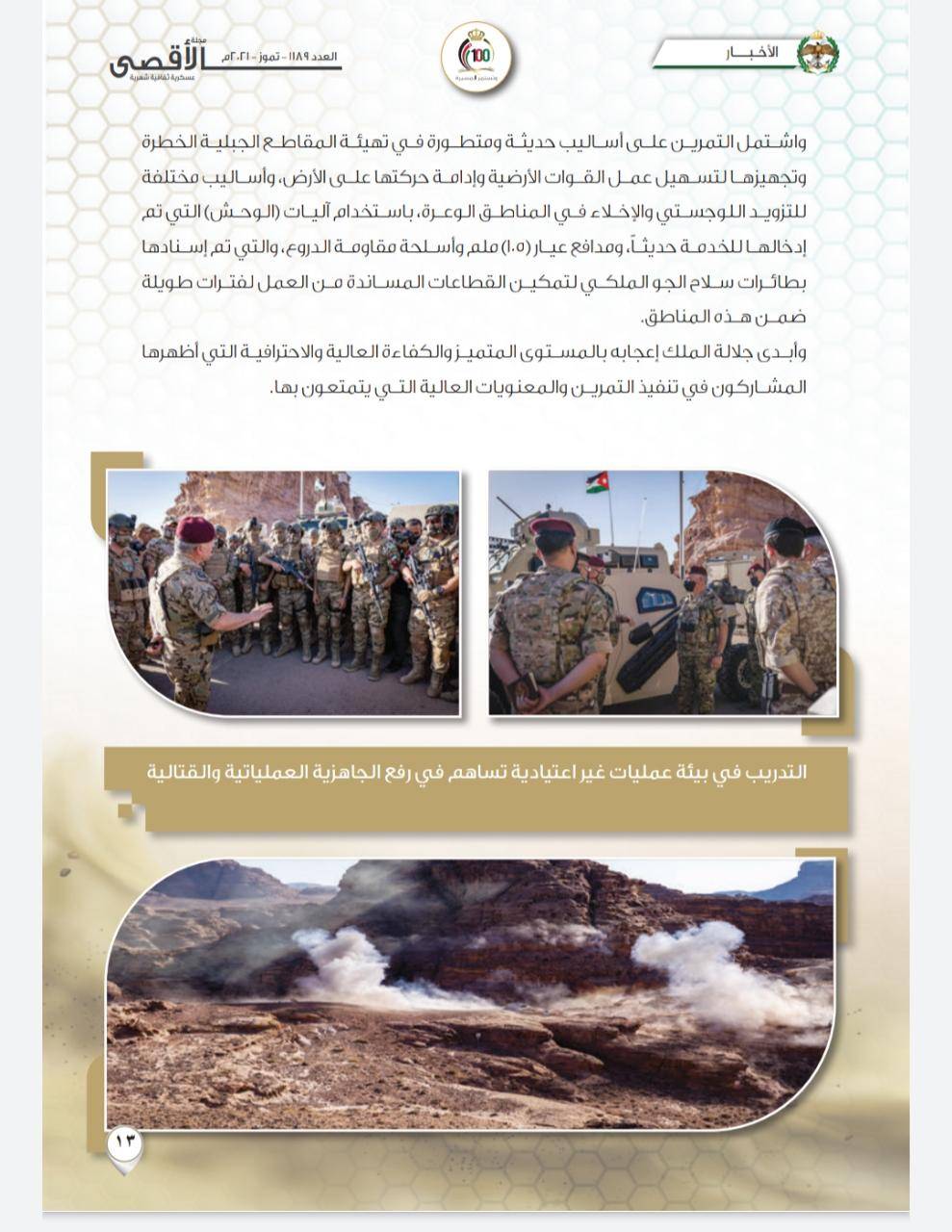 وكما اشار العدد الى ان جلالة القائد الاعلى للقوات المسلحة الاردنية الجيش العربي تابع تمرينًا تعبويًا بحضور ولي العهد سمو الأمير الحسين بن عبد الله الثاني نفذته كتيبة المغاوير /61 إحدى وحدات لواء سمو الشيخ محمد بن زايد .