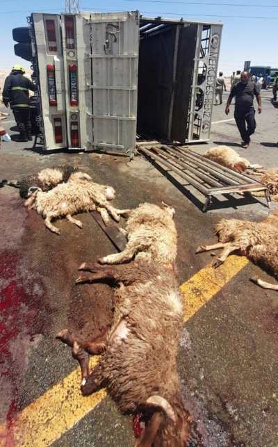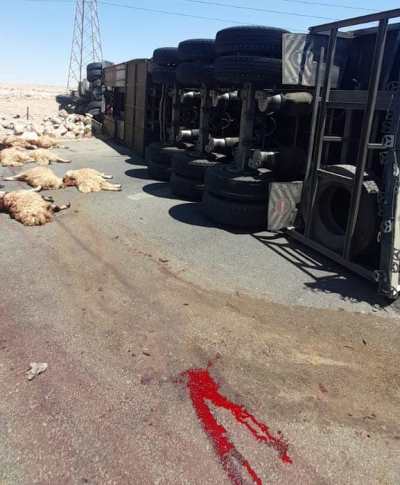 قالت الدوريات الخارجية إنها تتعامل الآن مع حادث تدهور لمركبة شحن محملة بالأغنام ما بعد جسر الكلية العسكرية باتجاه الزرقاء / اشارات طارق، حيث نجم عن الحادث احتراق لمقدمة المركبة ونفوق عدد كبير من الاغنام.