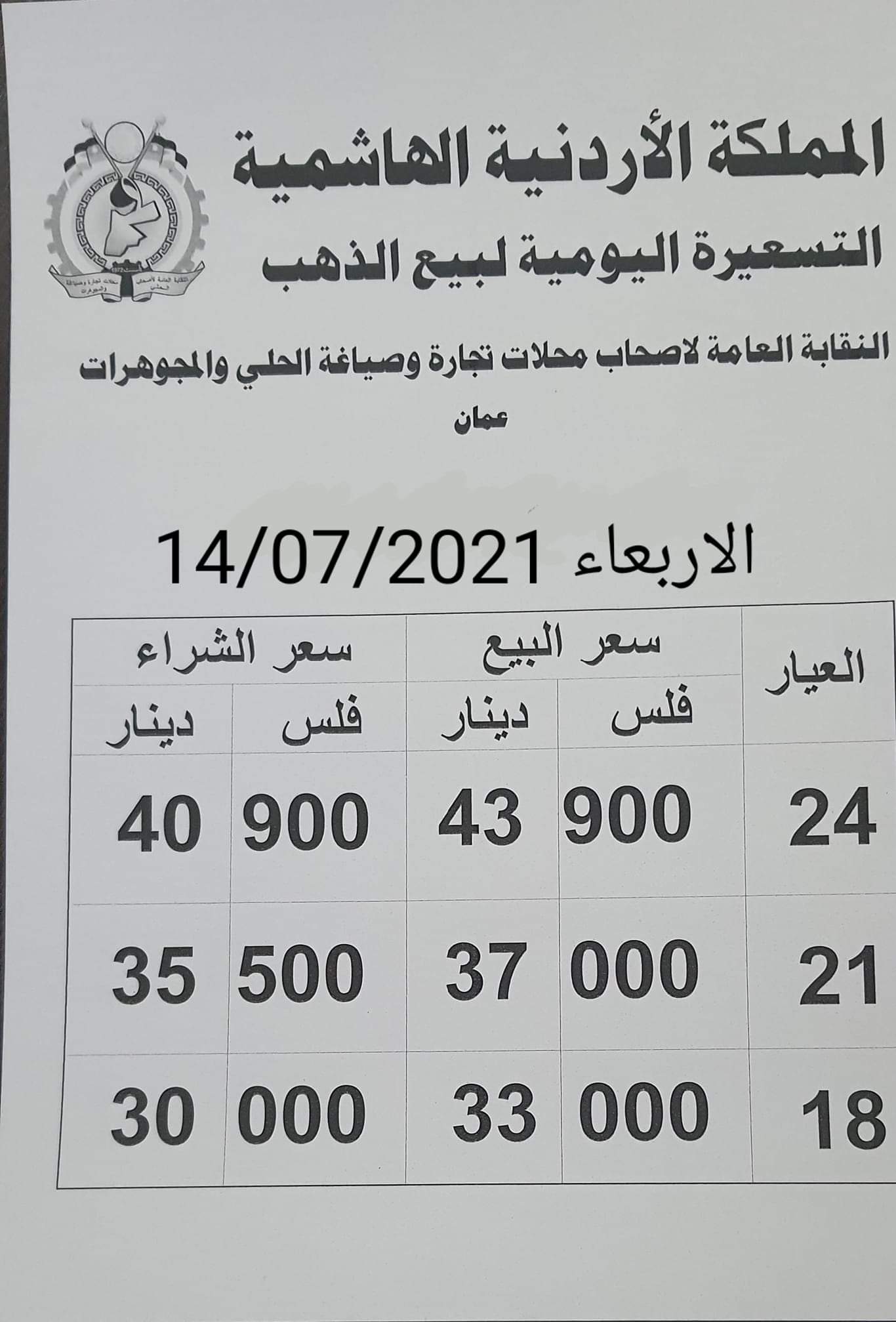 ويشمل التقريــر أسعار المعدن عيارات ( 24، 21، 18) ، كونها الأكثر تداولا في الأردن.