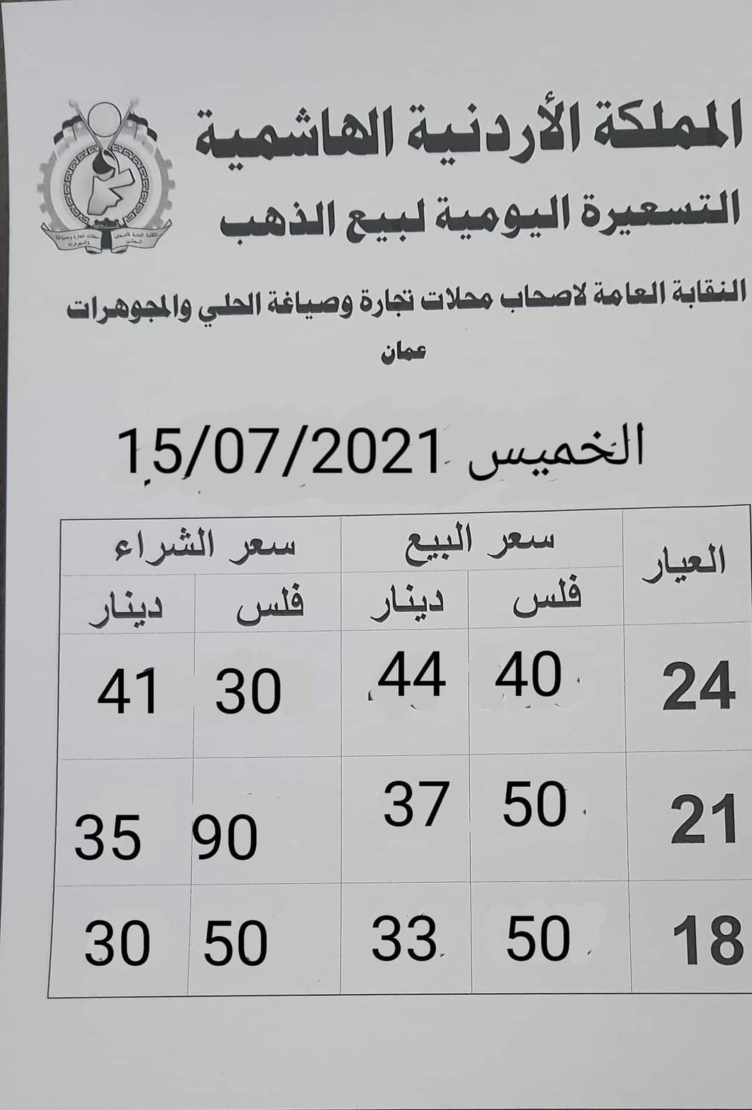 ويشمل التقريــر أسعار المعدن عيارات ( 24، 21، 18) ، كونها الأكثر تداولا في الأردن.