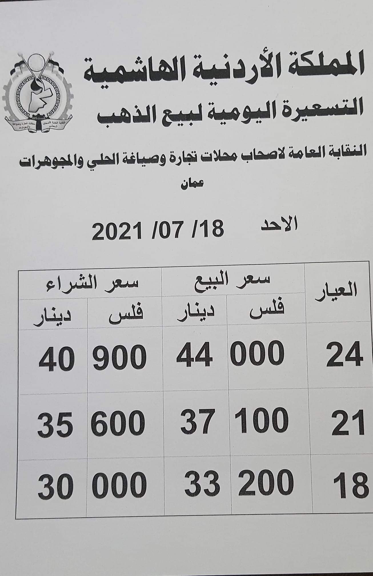 ويشمل التقريــر أسعار المعدن عيارات ( 24، 21، 18) ، كونها الأكثر تداولا في الأردن.