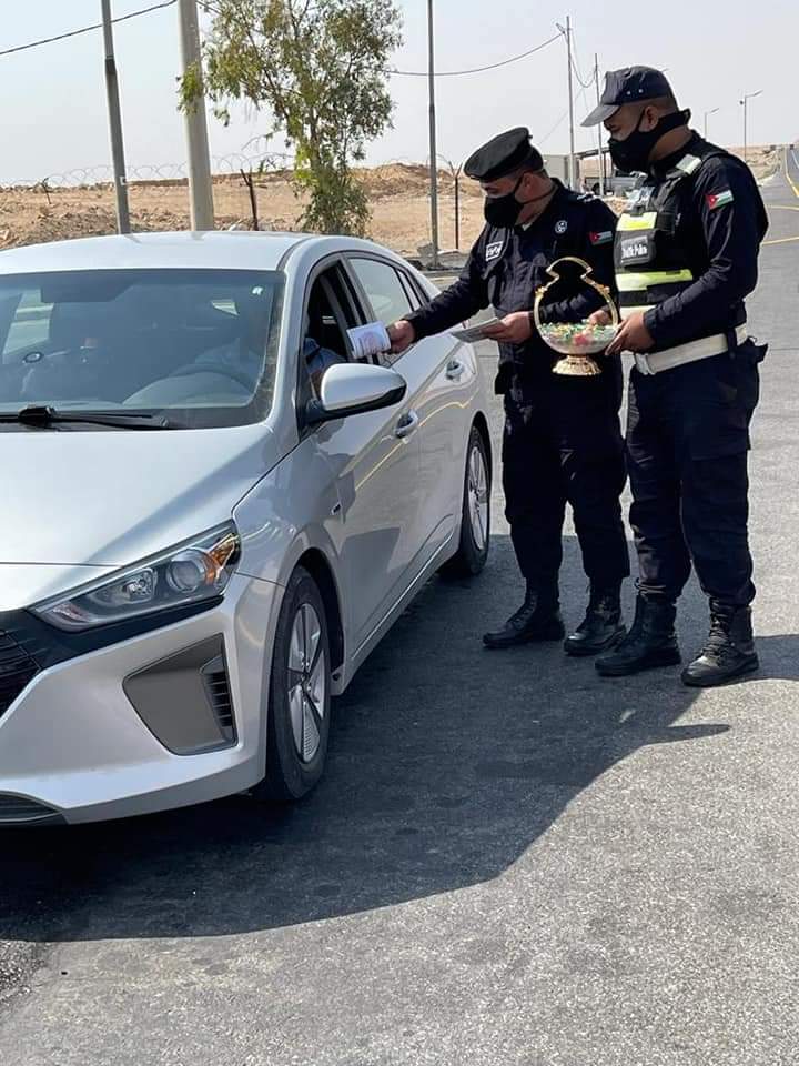 افتتح مدير إدارة الدوريات الخارجية العقيد الدكتور حسام صايل القاضي مبادرة العيد أحلى بدون حوادث حيث اشتملت على توزيع الحلوى وبطاقات المعايدة على الاخوة المواطنين والسائقين مرتادي الطرق ومشاركتهم فرحتهم بمناسبة عيد الأضحى المبارك وتوزيع بطاقات تعنى بارشادات السلامة المرورية والصحية .