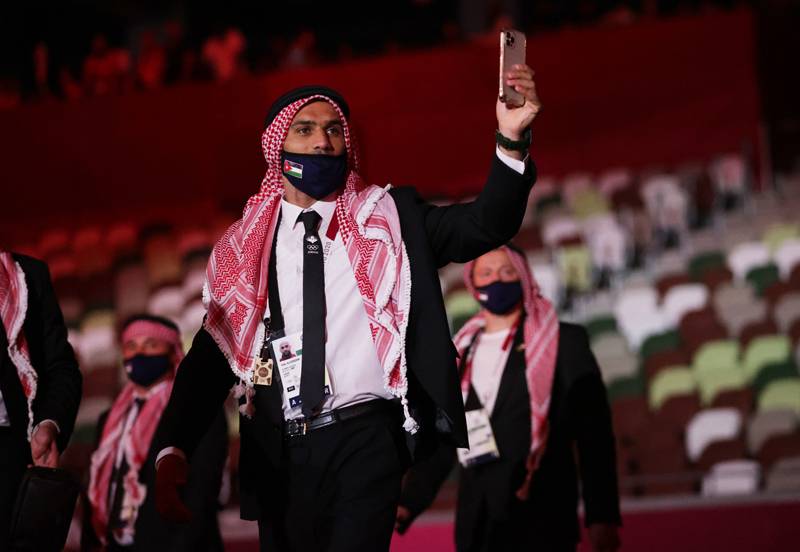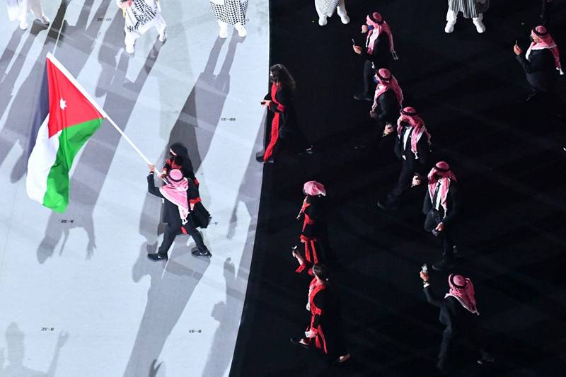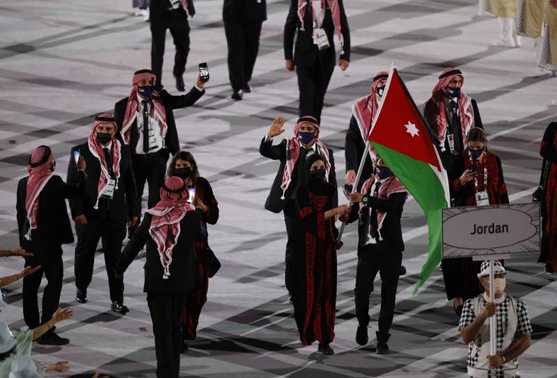 وكانت البعثة الأردنية الدولة الـ 192 التي تدخل إلى أرضية حفل افتتاح أولمبياد طوكيو خلال استعراض أعلام الدول المشاركة.