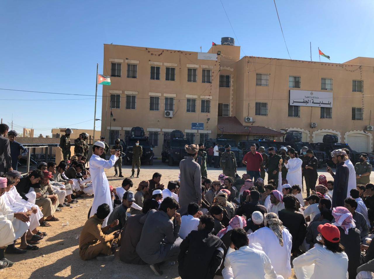 والتقى النائب صالح ساري أبو تايه اليوم الأحد بالمعتصمين أمام مبنى البلدية في الجفر وثناهم عن محاولة "الإنتحار الجماعي" وطالبهم بتشكيل لجنة من خمس أشخاص للقاء أحد مدراء الأجهزة الأمنية لبحث سبل حل القضية غدا .
