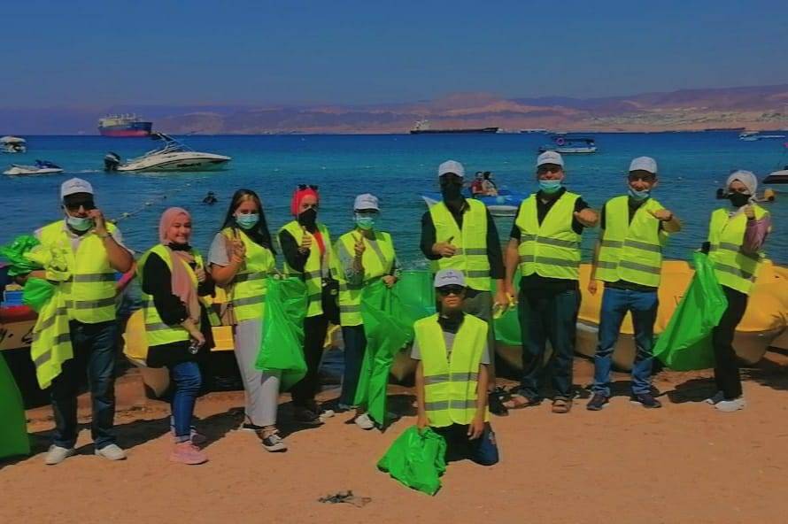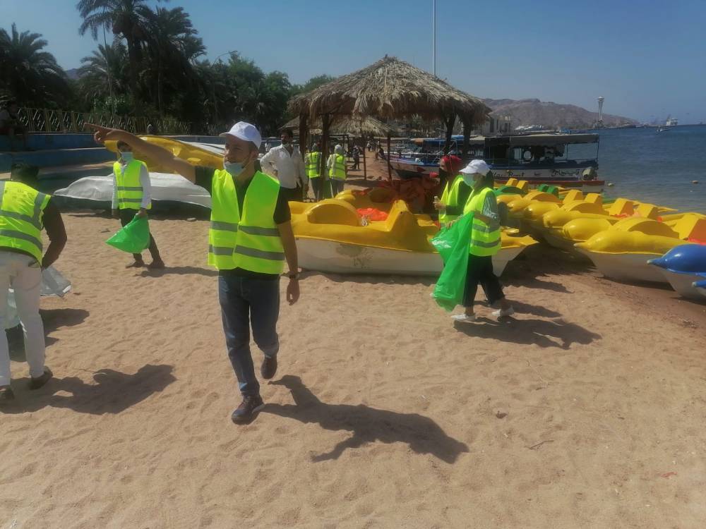 بمشاركة مبارد عالم ايجابي والجمعية الملكية لحماية البيئة البحرية وسلطة منطقة العقبة الاقتصادية الخاصة وكوادر الامن العام  ومختلف المراكز والقطاعات في المحافظة.